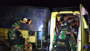 detikhukum.id, – Kabupaten Keerom – Prajurit Satgas Pamtas RI-PNG Yonif 122/TS Pos Kalipay melaksanakan kegiatan pemeriksaan (Sweeping) di jalan lintas trans Papua tepat di depan Pos Kalipay, Distrik Waris, Kabupaten Keerom, Papua, (29/07/2024).