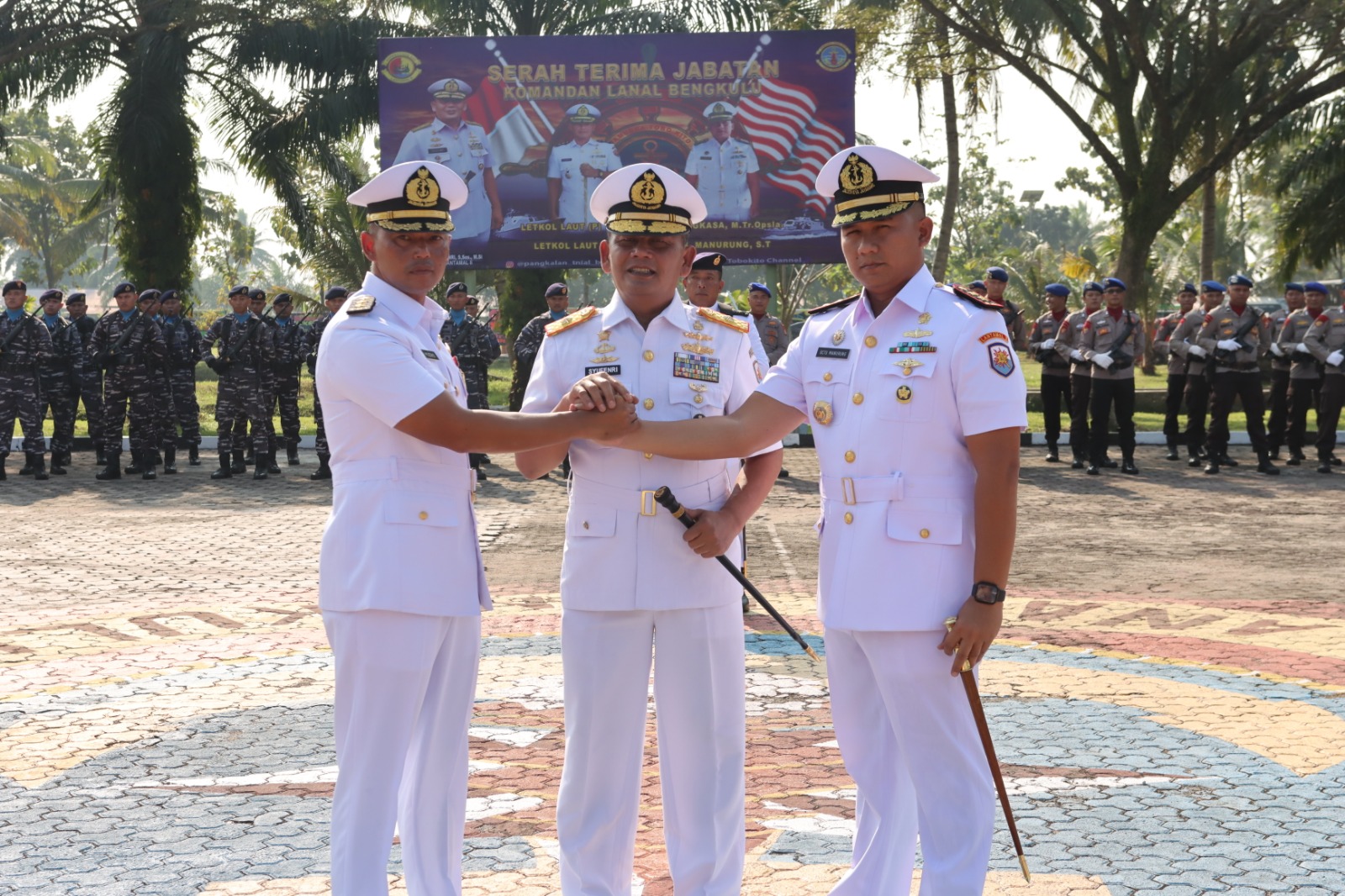 detikhukum.id, – TNI AL, Bengkulu,- Komandan Lantamal II Laksamana Pertama TNI Syufenri, S.Sos., M.Si., memimpin Upacara Serah Terima Jabatan (Sertijab) Komandan Lanal (Danlanal) Bengkulu dari Letkol Laut (P) Yudho Mewah Angkasa, M.Tr.Opsla., kepada Letkol Laut (P) Octo Sahat M. Manurung, S.T., di Mako Lanal Bengkulu, Senin (29/7/2024).