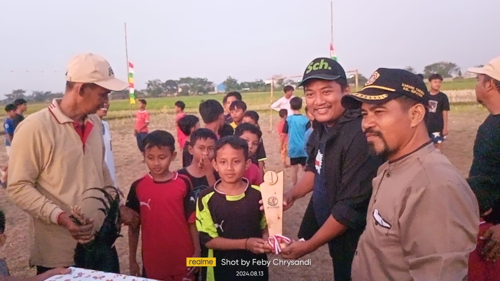 “Alhamdulillah hari ini pertandingan Pinal antara perum grand vilage vs alzam Tari Kolot,dengan score 3-1 yang di menangkan oleh perum grand vilage, adapun setiap pemain yang membuat gol di berikan hadiah atau peresenan sebesar 50 ribu oleh ketua karang taruna sebagai bentuk semangat buat para pemain”pungkas ketua RT Alex
