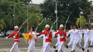 detikhukum.id, – TNI AL, Belawan,- Komandan Pangkalan Utama TNI Angkatan Laut I (Danlantamal I) Brigjen TNI (Mar) Jasiman Purba, S.E., CHRMP., didampingi Ketua Korcab I DJA I Ny. Othy Jasiman Purba beserta Forkopimda Sumatera Utara menghadiri Upacara Hari Ulang Tahun ke79 Kemerdekaan Republik Indonesia Tahun 2024 dengan tema, “Nusantara Baru, Indonesia Maju”, dipimpin oleh Pj. Gubernur Sumatera Utara Drs. Dr. Agus Fatoni, M.Si., bertempat di Lapangan Astaka, Medan, Sumatera Utara, Sabtu (17/8/2024).