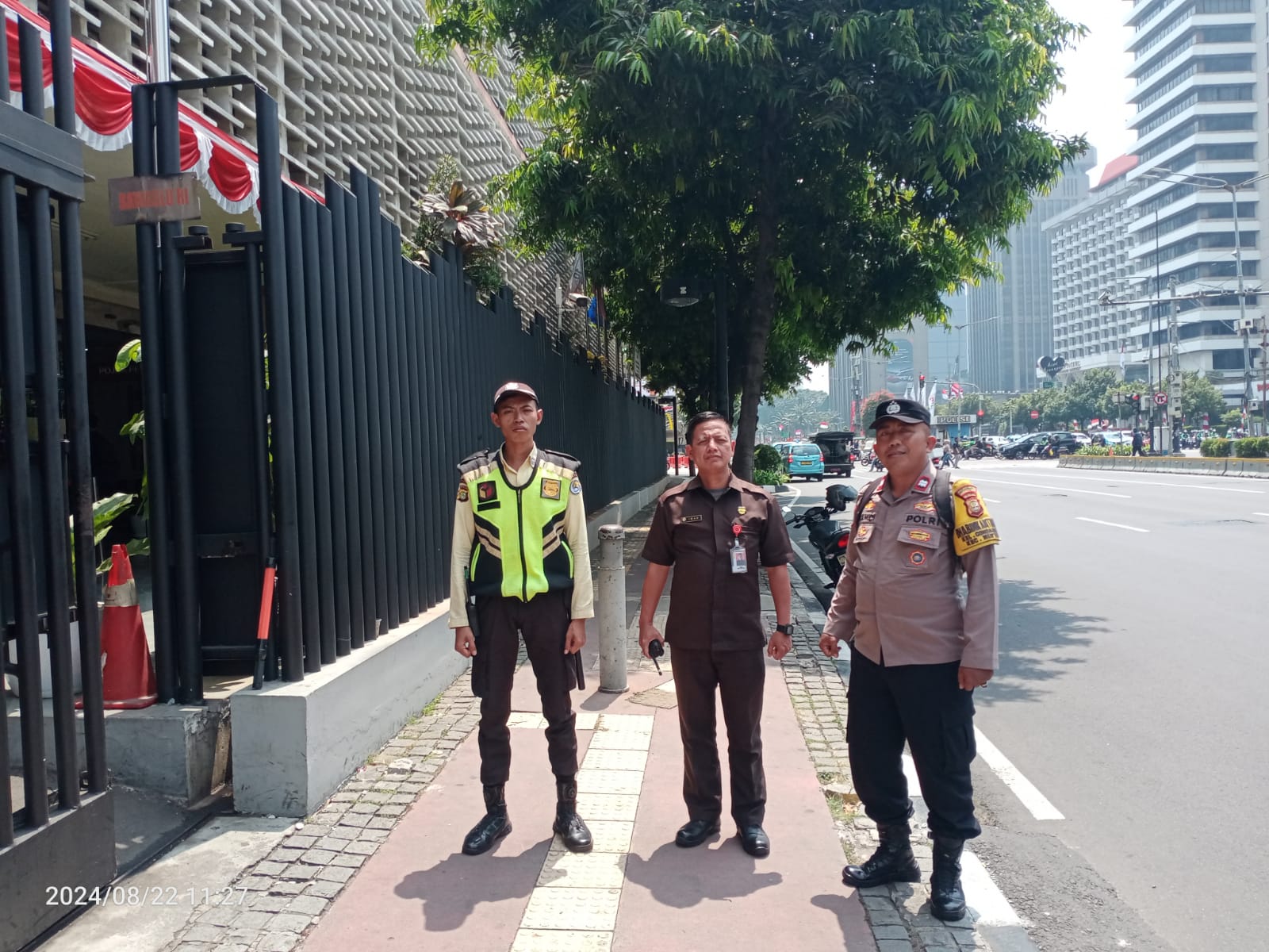 detikhukum.id, – Jakarta Pusat – Patroli Bhabinkamtibmas Aiptu Kamidi melaksanakan patroli antisipasi timbul aksi unjuk rasa kantor Bawaslu R.I Jl. MH Thamrin No. 4 Kelurahan Gondangdia Jakarta Pusat. Kamis (22/8/2024).