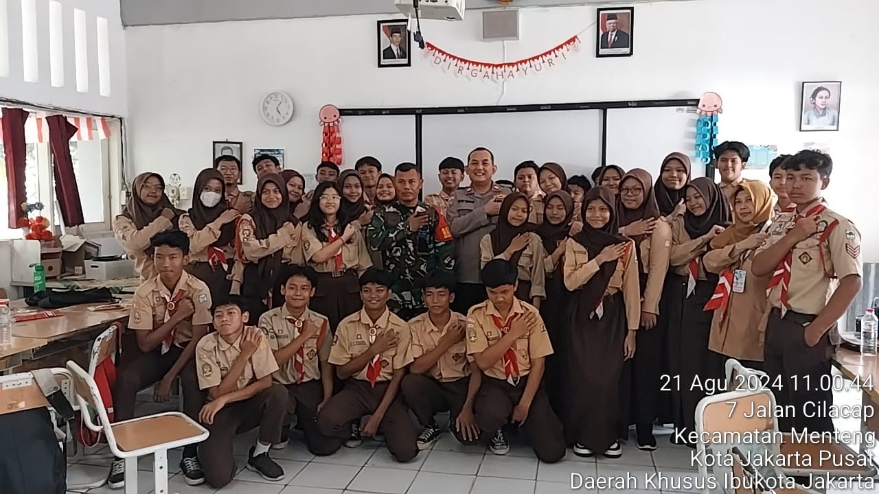 Selanjutnya Aiptu Roby menyebutkan tujuan kegiatan ini adalah bentuk pengaplikasian dari atensi Kapolres Metro Jakarta Pusat Kombespol. Susatyo Purnomo Condro, S.H.,S.I.K.,M.Si melalui Kapolsek Metro Menteng Kompol Bayu Marfiando, S.H., S.I.K., guna membentuk sinergi TNI-Polri dan pelajar terciptanya rasa aman dan nyaman.