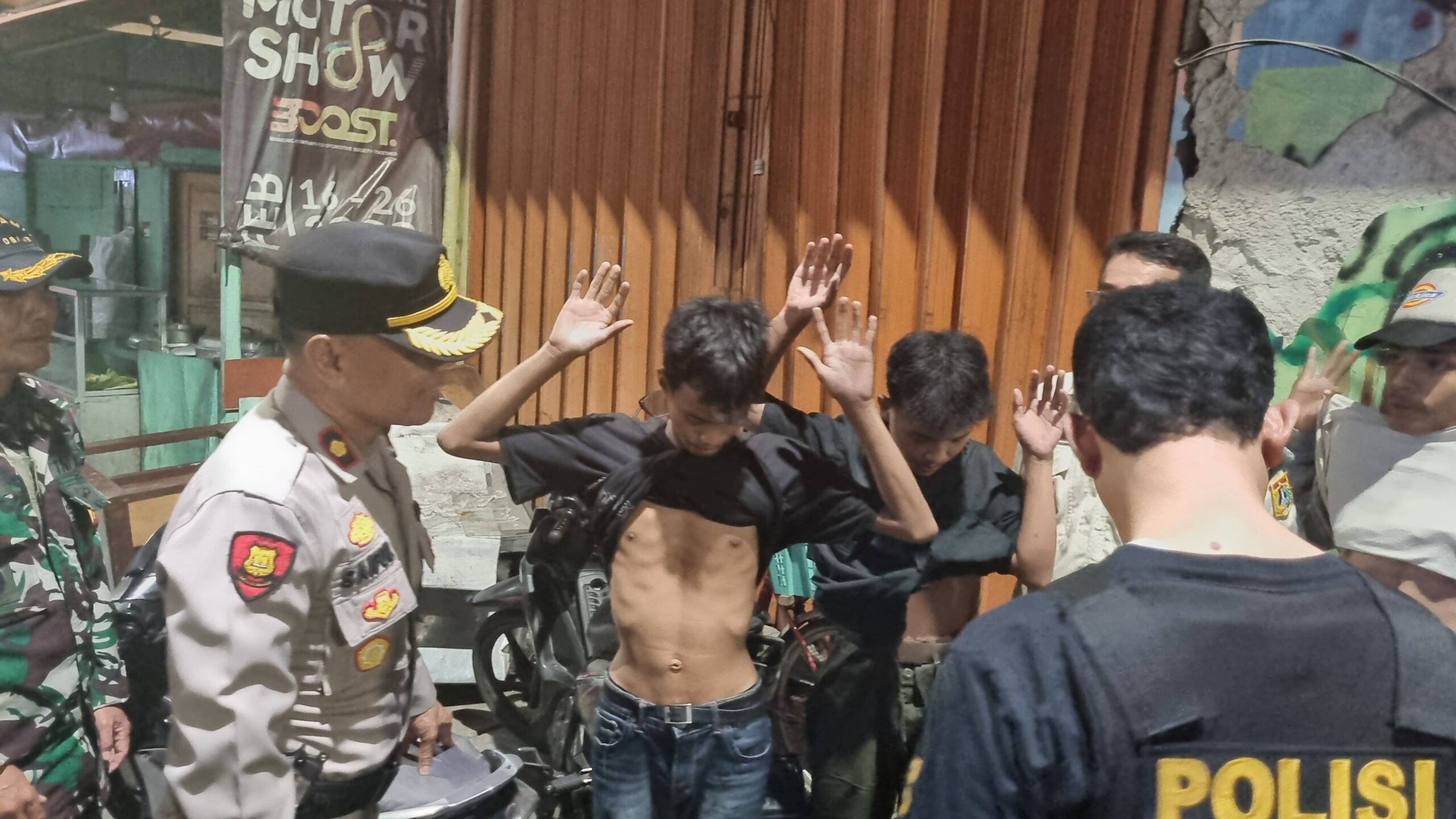 Tidak hanya memberikan himbauan terkait kamtibmas dengan humanis patroli gabungan tiga pilar juga melakukan pemeriksaan dan penggeledahan badan juga membubarkan anak-anak remaja yang kumpul-kumpul atau nongkrong-nongkrong sampai larut malam di titik-titik rawan yang berpotensi terjadinya tawuran jangan sampai terjadi tawuran dititik-titik rawan. Dan saat di lakukan pemeriksaan, penggeledahan badan terhadap anak-anak remaja tersebut tidak di temukan atau di dapatkan barang / benda sajam.