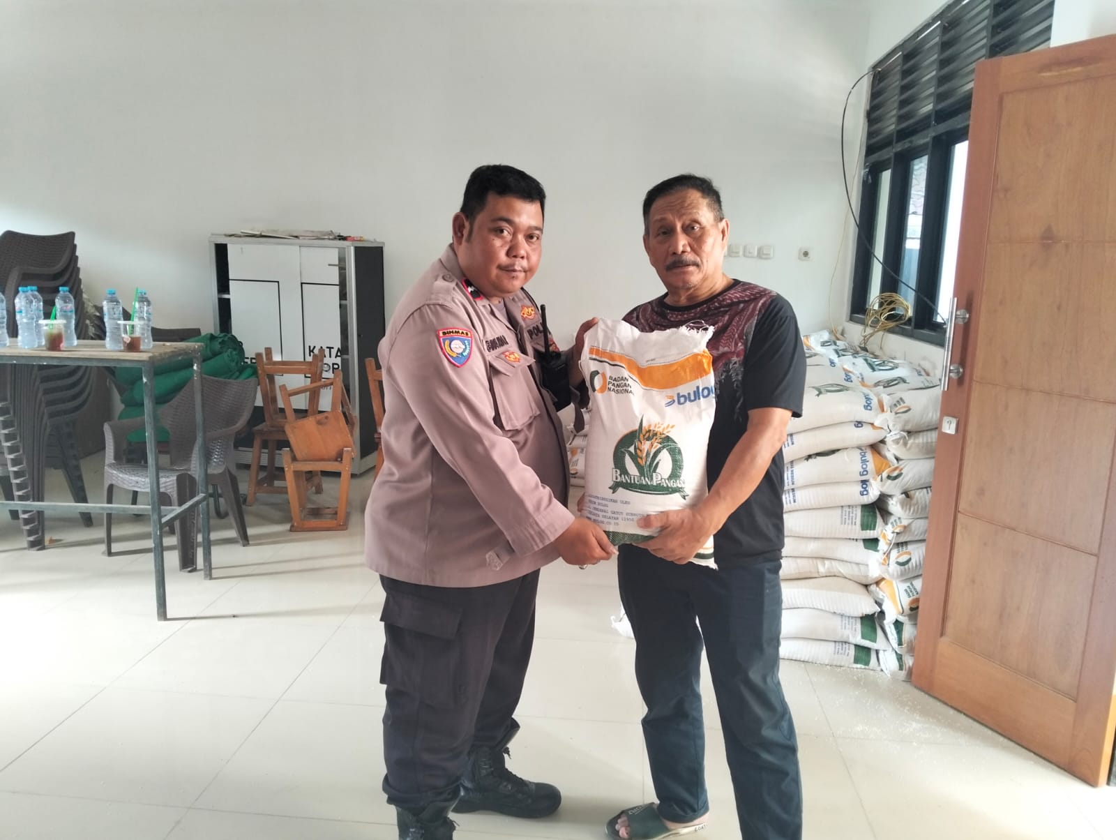Aipda Ginanjar selaku pembina wilayah juga menyampaikan pesan dari Kapolres Metro Jakarta Pusat Kombes Pol Susatyo Purnomo Condro kepada warga masyarakat untuk tertib dalam pengambilan beras oleh Bulog.