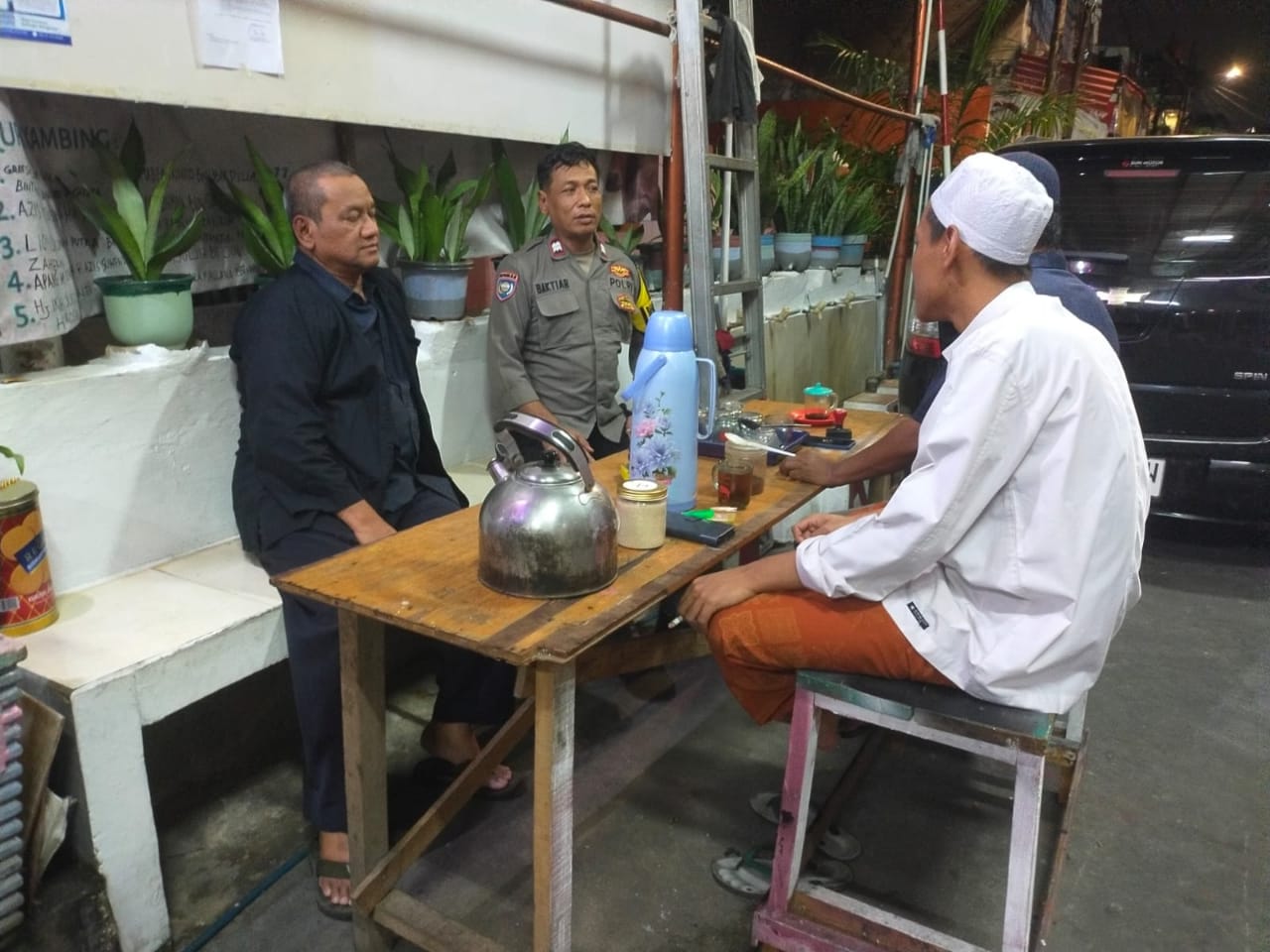 Aiptu Baktiar Emri saat sambang wilayah bertemu dengan bapak Ujang ketua RT 05 dan warga di lingkungan RT 05 RW 02 Galur, sambil duduk santai berikan imbauan kamtibmas sekaligus, menyampaikan pesan dari Kapolres Metro Jakarta Pusat Susatyo Purnomo Condro, S.H., S.I.K., M.Si., untuk mengajak ketua RT dan bersama-sama menjaga kamtibmas yang aman dan kondusif menjelang Pilkada DKI Jakarta Tahun 2024.