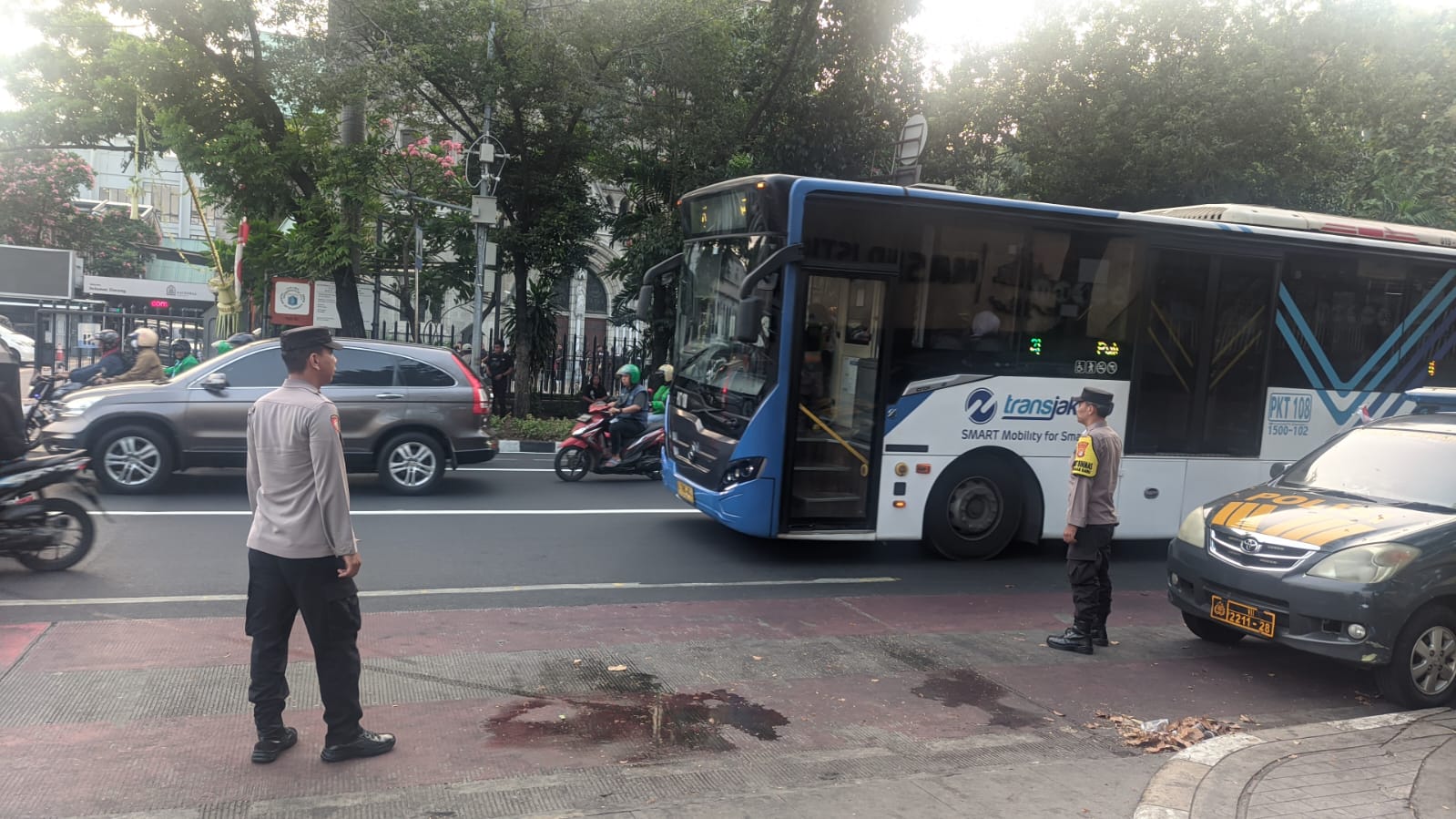 detikhukum.id, – Jakarta Pusat – Anggota Samapta Polsek Sawah Besar Bripka Hendri Mintarsa melaksanakan pengaturan arus lalu lintas di depan Gereja Katedtal, Jl. Katefral No. 8 Sawah Besar, Jakarta Pusat. Rabu (3/9/2024)