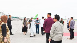 detikhulum.id, – TNI AL, Belawan,- Komandan Pangkalan Utama TNI Angkatan Laut I (Danlantmal I) Brigjen TNI (Mar) Jasiman Purba, S.E., CHRMP., didampingi Ketua Korcab I DJA I Ny. Othy Jasiman Purba beserta Forkopimda Sumatera Utara menjemput kedatangan dan mengantar keberangkatan Presiden Republik Indonesia Ir. Joko Widodo, bertempat di Bandara Internasional Kuala Namoe, Deli Serdang, Sumatera Utara, Selasa (10/9/2024).
