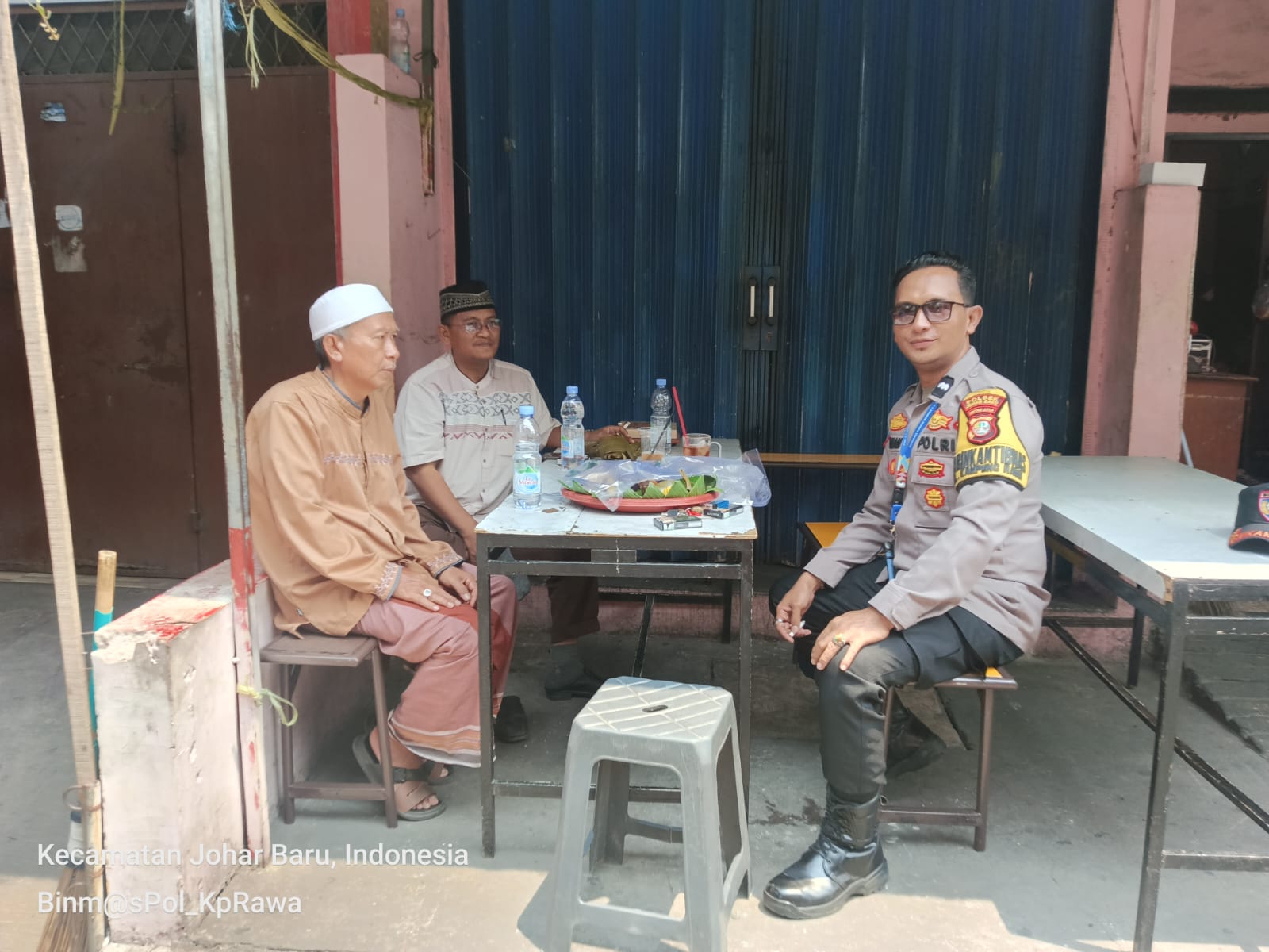 Sebagai Bhabinkamtibmas Aipda Ikhwan Mulyadi berinteraksi dengan tokoh agama Ustadz Lutfhi, S.Ag., dan tokoh masyarakat Mansyur Ketua RT 10 RW 05 Kampung Rawa, serta berikan imbauan kamtibmas agar selalu menjaga keamanan, imbau anak-anak muda untuk tidak melakukan tawuran dan tidak menggunakan narkoba, selalu tingkatkan siskamling, selalu parkirkan kendaraannya dalam keadaan terkunci ganda serta pastikan listrik dan api benar-benar dalam keadaan mati agar terhindar dari kebakaran.