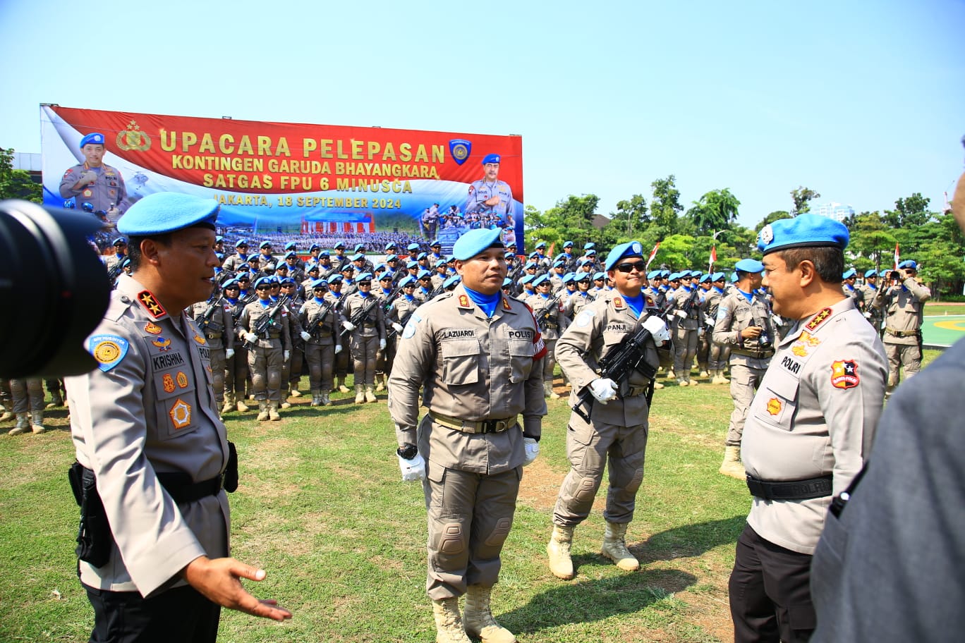 detikhukum.id, — Jakarta – Wakapolri Komjen Pol Agus Andrianto memimpin upacara pelepasan kontingen Garuda Bhayangkara Satuan Tugas Formed Police Unit (FPU) 6 MINUSCA dalam penugasan misi pemeliharaan perdamaian PBB ke negara Afrika Tengah. Upacara dilaksanakan di lapangan Bhayangkara Mabes Polri, Jakarta, Rabu (18/9/2024).