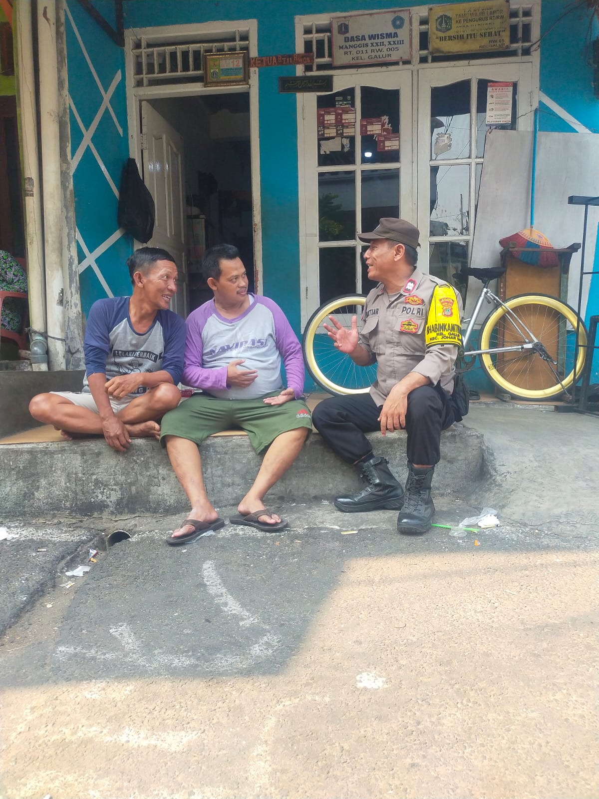 Kegiatan Patroli Dialogis Bhabinkamtibmas Kelurahan Galur Aiptu Baktiar Emri, sambang bertemu dengan Budi ketua RT 10 dan Bagia ketua RT 11 RW 05 Galur untuk bersilaturahmi dan memberikan imbauan kamtibmas.