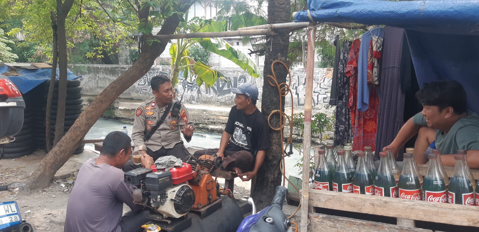 Kegiatan patroli dialogis Aiptu Antonius AW, dalam rangka melakukan interaksi dan komunikasi sosial untuk memberikan imbauan Kamtibmas menjelang Pilkada kepada warga sekitar.