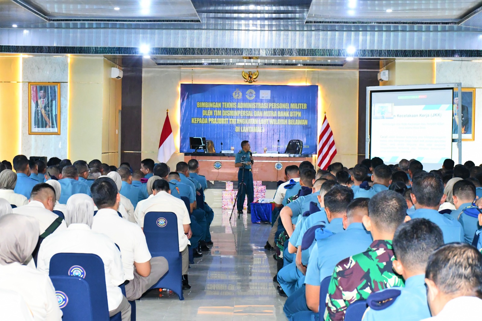 detikhukum.id, – TNI AL, Belawan,- Komandan Pangkalan Utama TNI Angkatan Laut I (Danlantamal I) Brigjen TNI (Mar) Jasiman Purba, S.E., CHRMP., yang di wakili Pjs. Wadan Lantamal I Kolonel Laut (P) Hendrik Kurniawan, M.Tr. Hanla., M.M., menghadiri Bimbingan Teknis Administrasi Personel Militer oleh Tim Disminpersal yang dipimpin Sekdisminpersal Kolonel Laut (P) Bambang Kuncoro, S.T., M.Si., mewakili Kepala Dinas Administrasi Personel TNI AL Laksamana Pertama TNI Uki Prasetia, S.T., M.M., dan Sosialisasi Pengelolaan Keuangan oleh PT. Asabri dan Mitra Bank BTPN kepada Prajurit TNI Angkatan Laut wilayah Lantamal I Tahun 2024, bertempat di Gedung OB Sya’af Mako Lantamal I, Jalan Serma Hanafiah No.01 Belawan, Sumatera Utara, Kamis (26/9/2024).