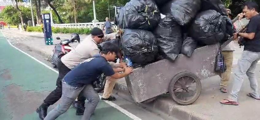 Dalam kesempatan Aipda Victor menyampaikan kepada Suwandi agar segera menaikkan gerobaknya agar tidak tidak terjadi tindak pidana mengingat massa aksi berjalan kaki sambil berorasi.
