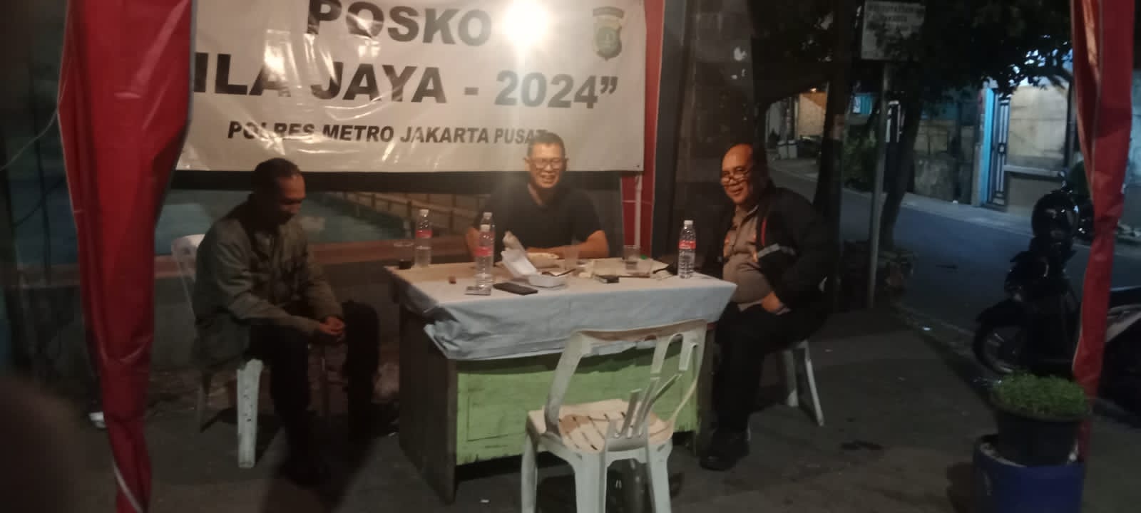 detikhukum.id, – Jakarta Pusat – Aiptu Ali Imran Kapolsubsektor Cut Mutia Polsek Metro Menteng dan Aipda Agung Anggota Polsubektor Sabang serta Pokdarkamtibmas Pemantauan Menjelang Pilkada di Posko Nila Jaya 2024 Perbatasan Kali Pasir dengan Kwitang Senen, Jakarta Pusat. Jumat malam (4/10/2024).