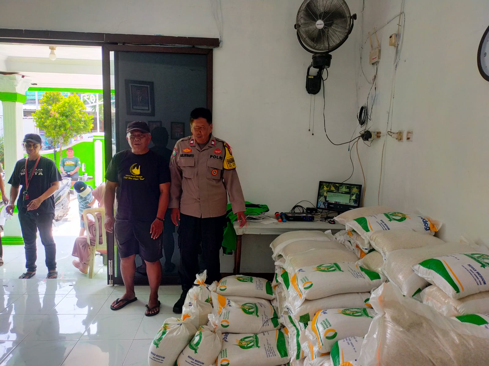 Kanit Binmas Polsek Bekasi Barat, IPTU Samsul Ma’arif, bersama Bhabinkamtibmas, AIPTU Sulistanto, melakukan monitoring pendistribusian Bantuan Pangan Non Tunai (BPNT) berupa cadangan beras pemerintah di wilayah Kelurahan Jakasampurna, Kecamatan Bekasi Barat.[13/10/24]