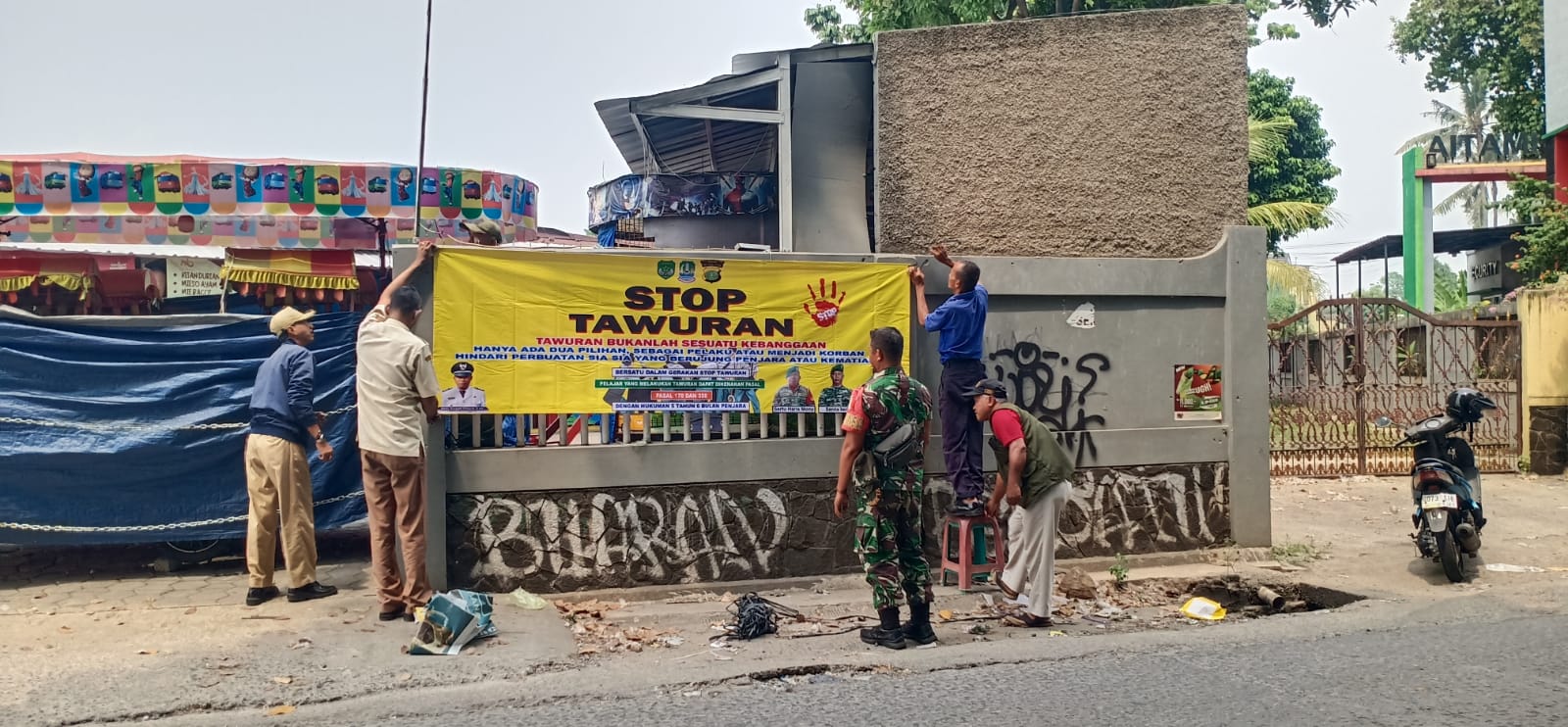 detikhukum.id, — Bekasi Kota , – Bhabinkamtibmas Kelurahan Jatiranggon, Aiptu H. Marpaung, bersama dengan unsur tiga pilar, melaksanakan kegiatan pemasangan spanduk himbauan “STOP TAWURAN” di beberapa lokasi strategis di Wilayah Kelurahan Jatiranggon, Kecamatan Jatisampurna, Kota Bekasi.