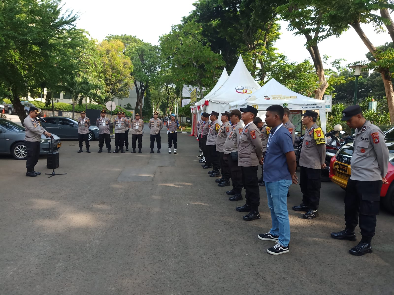 Pelaksanaan apel dimulai pada pukul 08.00 WIB dengan kekuatan personel pengamanan sebanyak 35 personel gabungan dari berbagai satuan di bawah koordinasi Polsek Sawah Besar. Dalam apel tersebut Kapolsek Sawah Besar memberikan arahan mengenai pentingnya menjaga ketertiban dan keamanan selama berlangsungnya dalam kegiatan RAKORBIN yang dihadiri oleh pejabat tinggi dari lingkungan Polri dan instansi terkait.