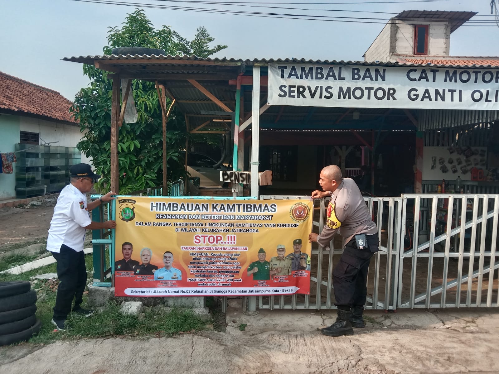 17 Oktober 2024 – Bhabinkamtibmas Kelurahan Jatirangga, BRIPKA Yasir Arfaki, bersama dengan Pokdarkamtibmas, melaksanakan kegiatan pemasangan spanduk himbauan “STOP TAWURAN” di wilayah Kelurahan Jatirangga, Kecamatan Jatisampurna, Kota Bekasi.
