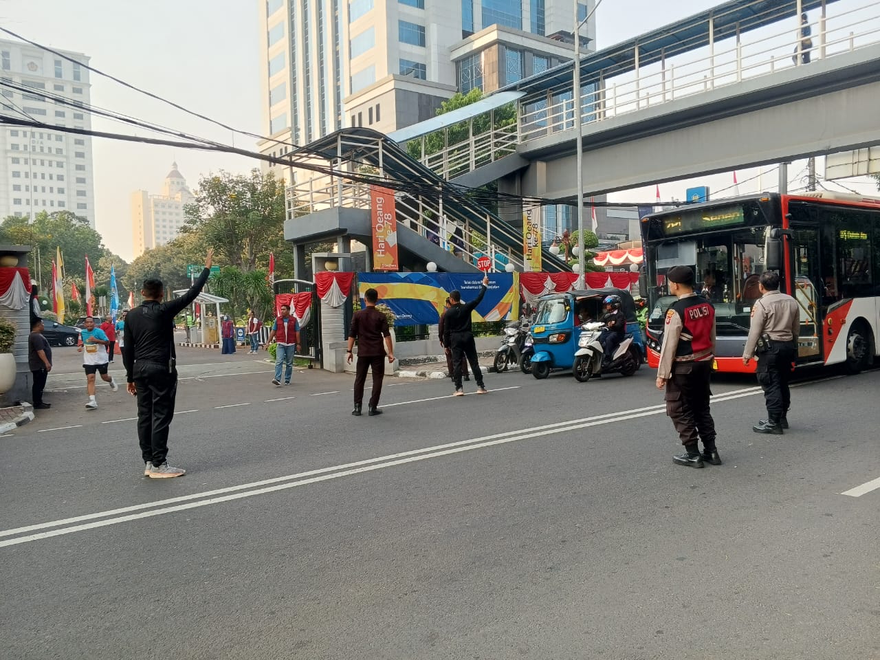 Pengaturan arus lalu-lintas ini dilakukan pagi hari untuk memastikan kelancaran arus lalu lintas tanpa hambatan maupun kemacetan, serta memberikan rasa aman bagi para pengguna jalan.
