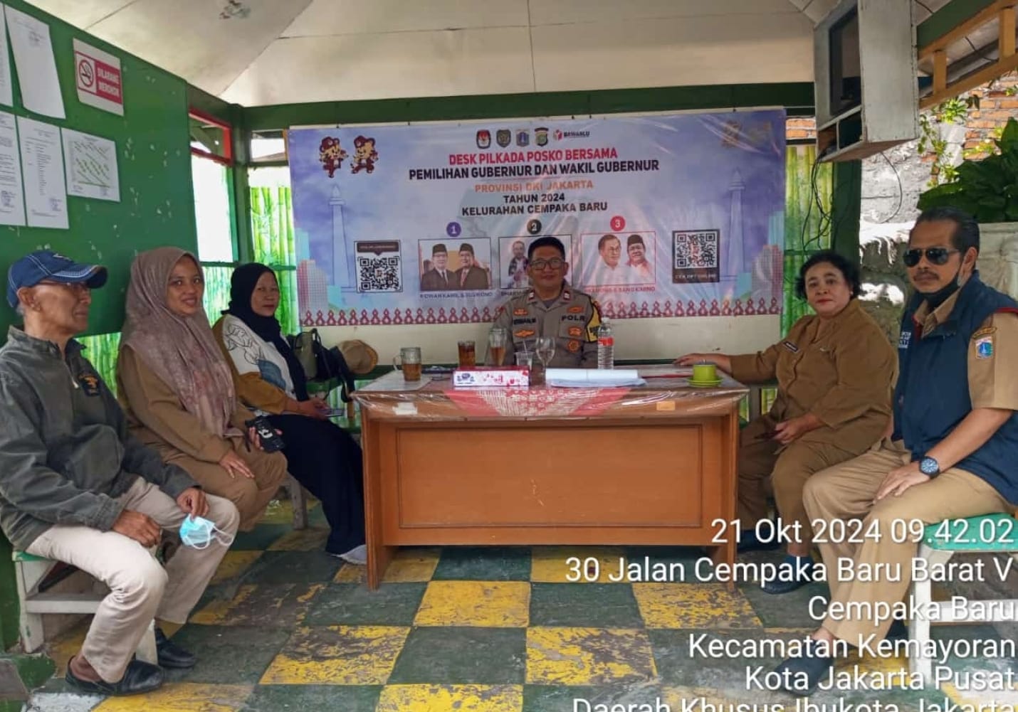 detikhukum.id, – Jakarta Pusat – Bhabinkamtibmas Kelurahan Cempaka Baru Aiptu Firman melaksanakan kegiatan Sambang dialogis dan Monitoring pos Pemilukada di Halaman Kantor Sekertariat Rw 09 Kelurahan Cempaka Baru Kemayoran Kecamatan Jakarta Pusat. Senin (21/10/2024).