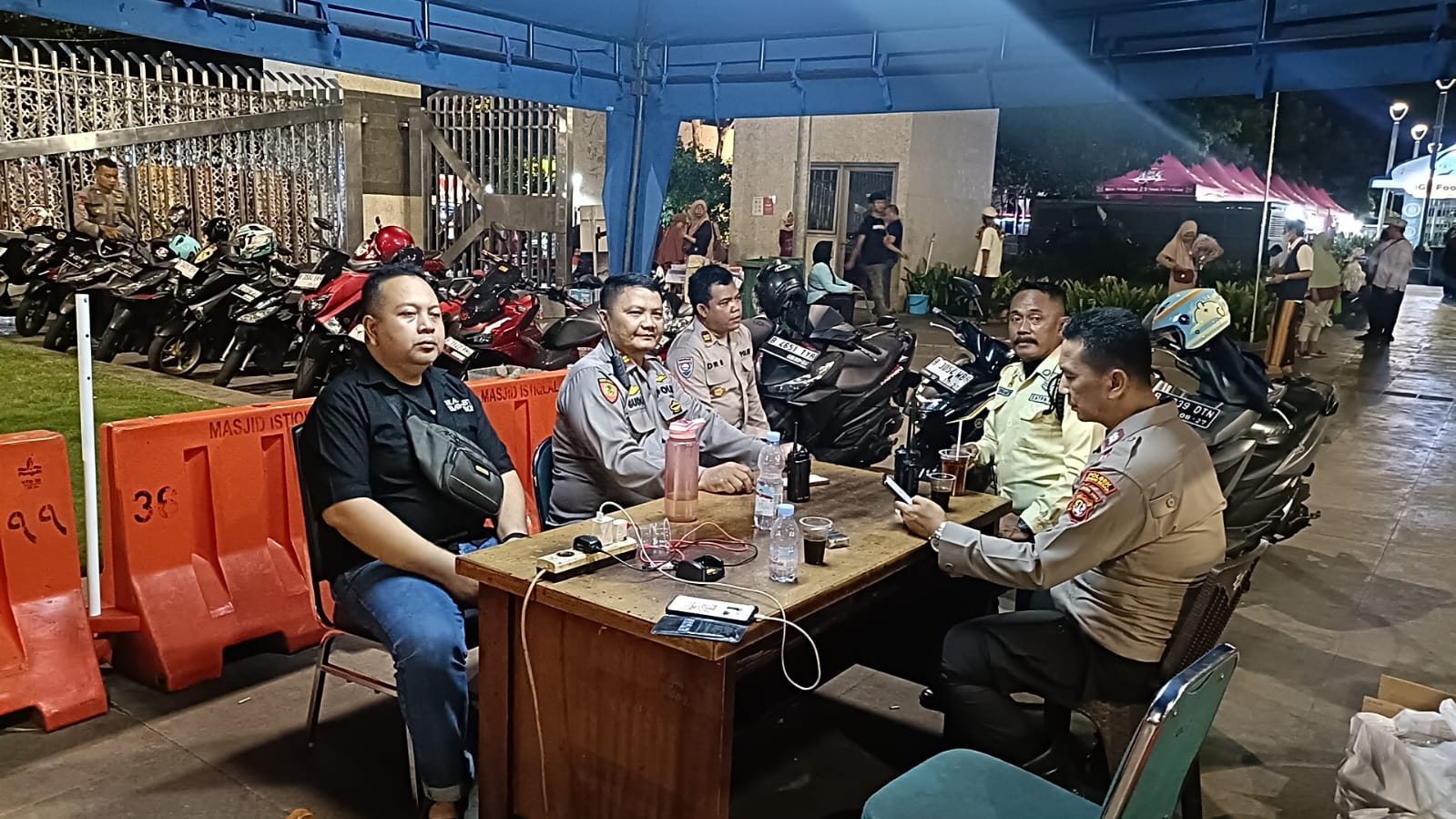 Personel keamanan terus siaga di sekitar Masjid Istiqlal untuk memastikan situasi tetap kondusif.