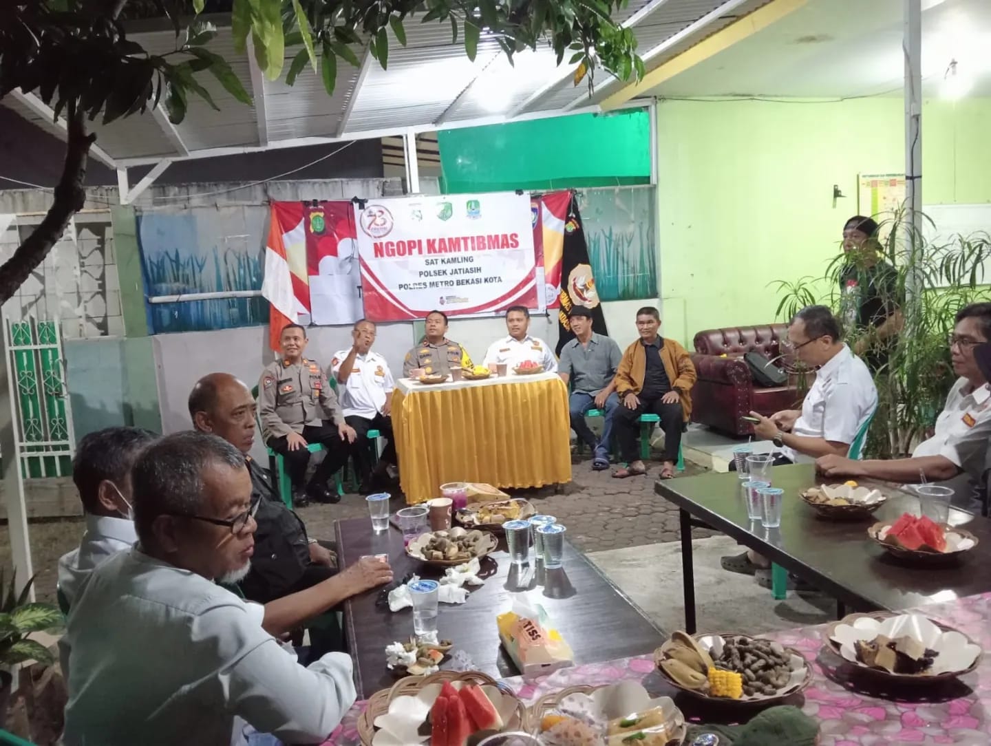 Polsek Jatiasih menggelar kegiatan Ngopi Kamtibmas bersama warga di Kampung Kebantenan, RT.06/06, Kelurahan Jatiasih Kecamatan Jatiasih Kota Bekasi, pada Jumat malam (18/10). Acara ini dihadiri oleh Kapolsek Jatiasih, Kompol Mega Winanto, S.I.Kom., M.H., bersama Kanit Binmas AKP H. Amiruddin RA, dan Bhabinkamtibmas Aipda Maulana. Selain itu, sejumlah tokoh masyarakat, seperti Joko Susilo, Ketua Pokdarkamtibmas Sub 25 Sektor Jatiasih, dan Kartono, serta warga setempat turut hadir dalam acara ini.