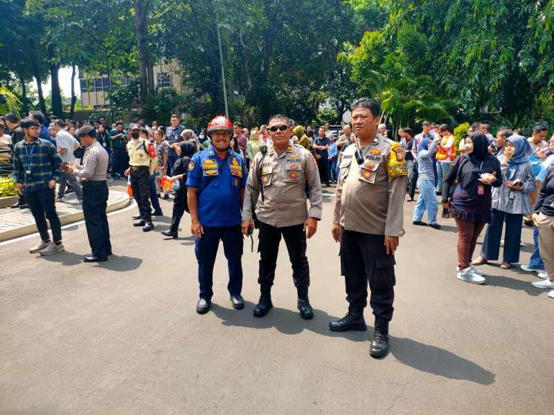 Kapolsubsektor Sabang Iptu Sopan Febriyanto bersama dengan Bhabinkamtibmas Kebon Sirih Aiptu Ujang Rusman melaksanakan pemantauan terhadap kegiatan latihan evakuasi kebakaran yang berlangsung di Gedung Menara Thamrin, Jalan MH. Thamrin, Menteng, Jakarta Pusat. Latihan ini bertujuan untuk meningkatkan kesiapsiagaan dan kemampuan penghuni serta petugas gedung dalam menghadapi potensi ancaman kebakaran, sekaligus memastikan protokol evakuasi berjalan sesuai dengan standar keselamatan.