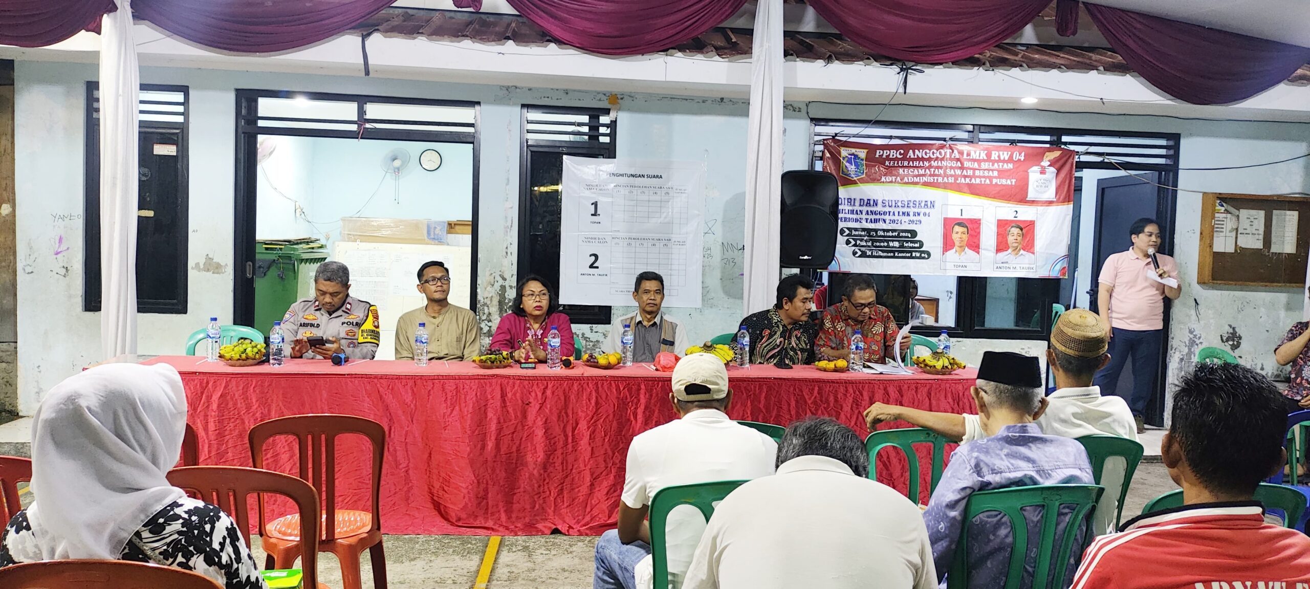Bhabinkamtibmas Mangga Dua Selatan dan Tiga Pilar Hadiri dan Pantau Pemilihan Anggota LMK RW 04 Periode 2024-2029