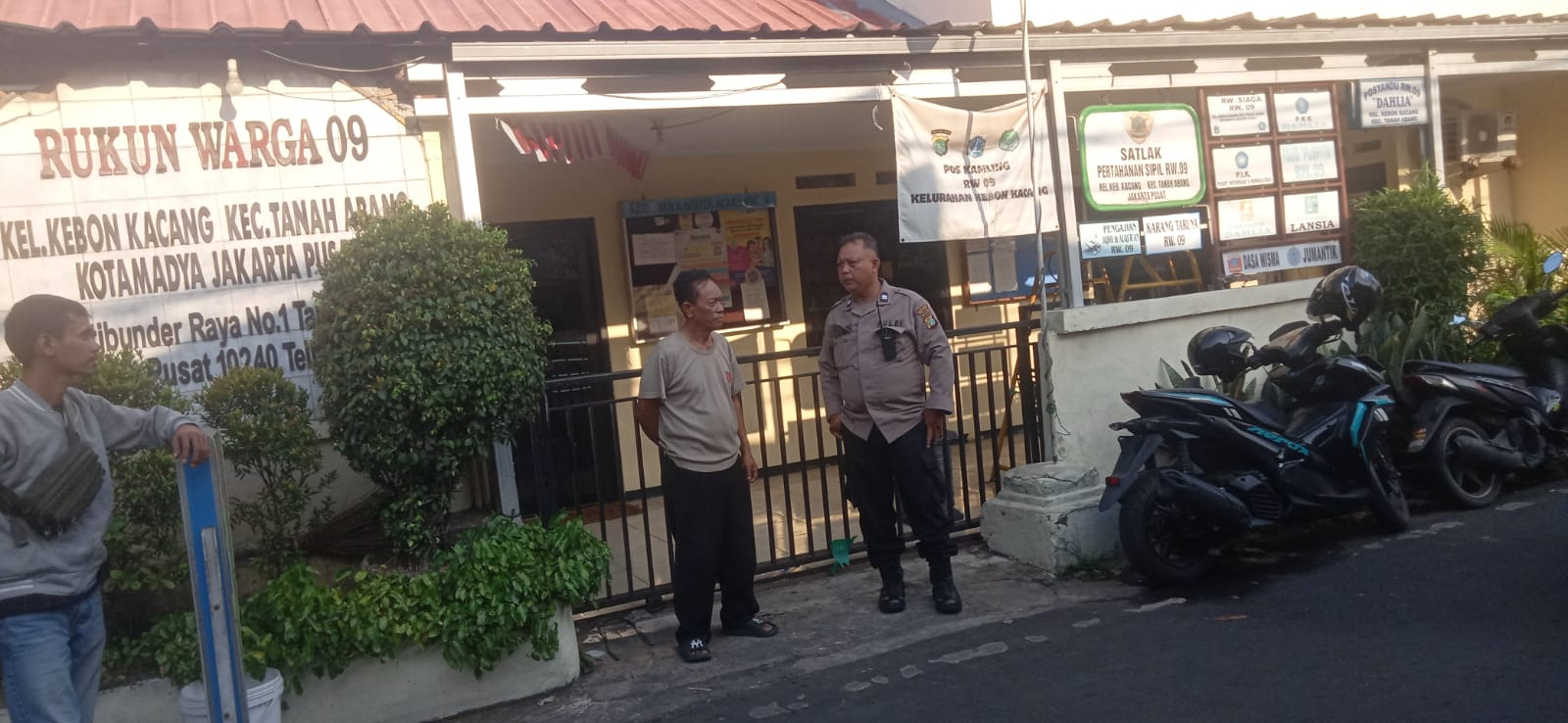 Aiptu Budiyono selaku Petugas Patroli 1051 melaksanakan patroli dan berikan imbauan kamtibmas kepada Jaja Petugas Keamanan RW 09 agar senantiasa membantu untuk menjaga keamanan, ketertiban dan kebersihan, agar selalu berhati-hati dan waspada dalam bekerja, jangan terlalu percaya terhadap orang yang baru dikenal dan menjelang Pilkada DKI Jakarta agar tetap menjaga kerukunan walaupun beda pilihan.