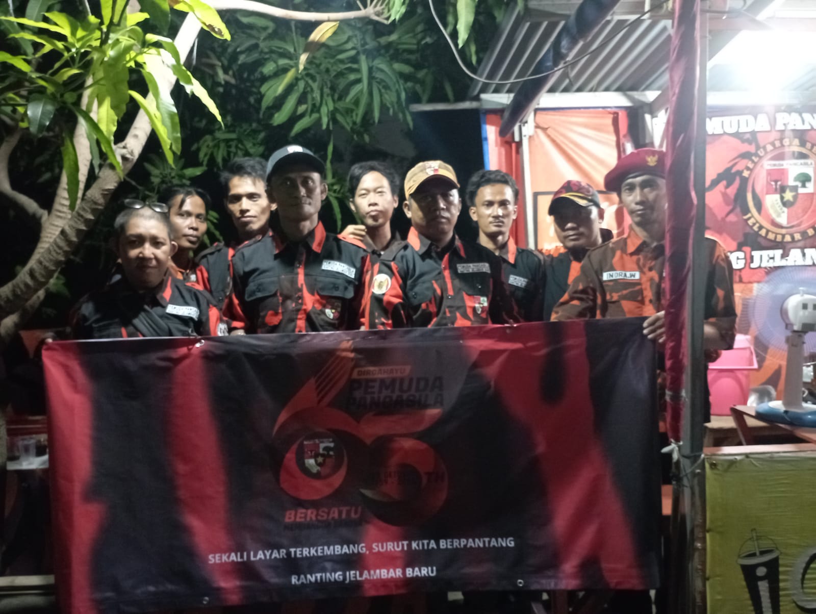 Kegiatan pemasangan bendera HUT ke 65 Pemuda Pancasila yang berbarengan dengan lahirnya sumpah pemuda di lakukan oleh pengurus dan anggota PP Ranting Jelambar Baru yang dihadiri juga oleh ketua PP ranting Jelambar Baru Onis Atjep. Minggu (27/10/2024) malam dinihari
