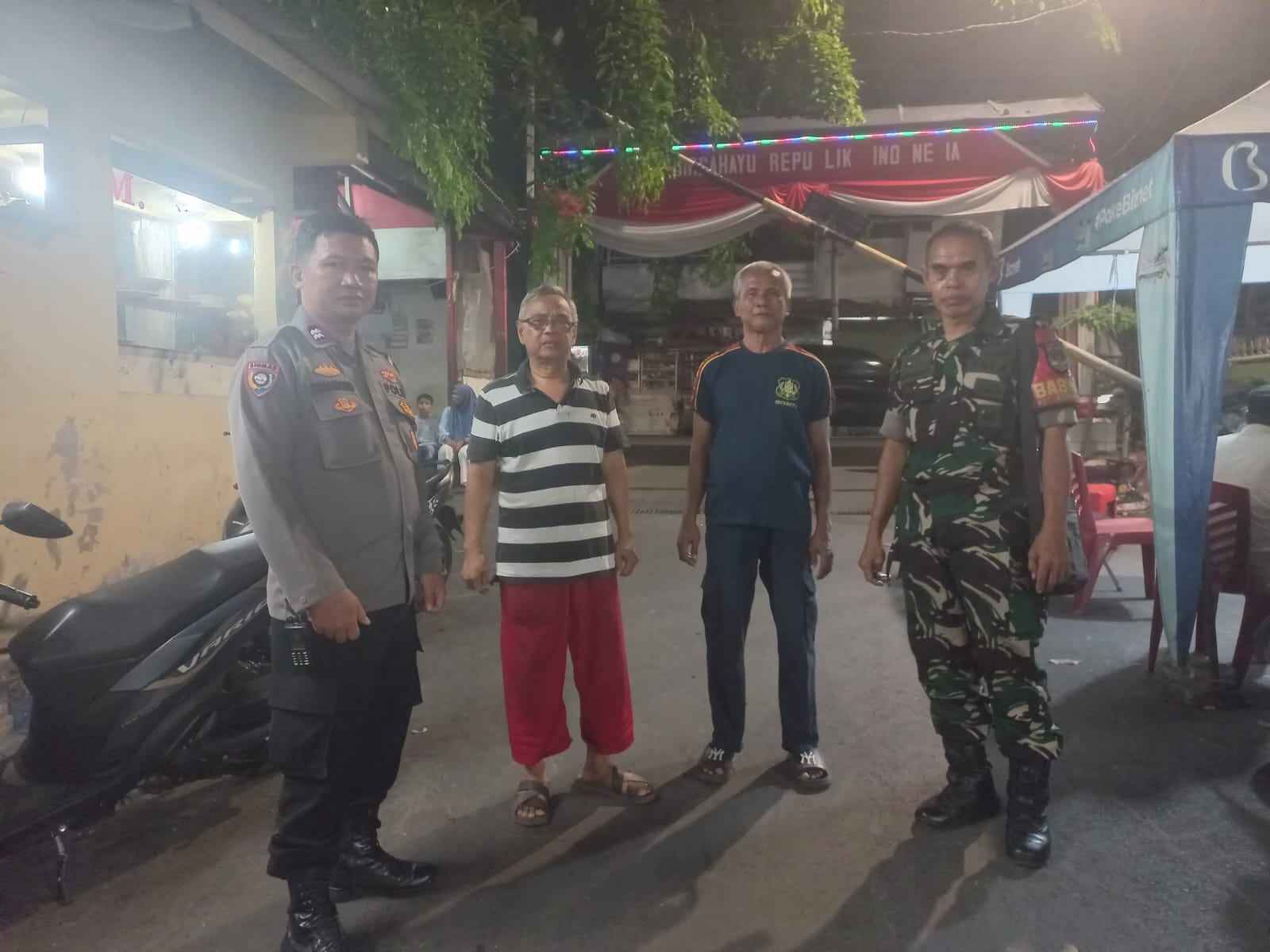 Selanjutnya Aiptu Suhartono selaku Bhabinkamtibmas bersama Babinsa sebagai Pembina wilayah berinteraksi dengan Yusuf sebagai Petugas Siskamling.