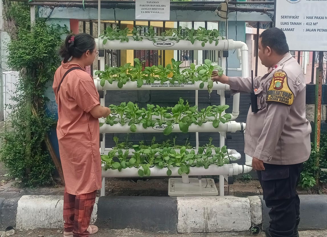 detikhukum.id, – Jakarta Pusat – Bhabinkamtibmas Kelurahan Petamburan bersama Kader PKK Meninjau langsung Ketahanan Pangan Hidroponik di Pemukiman RW 06 Jalan Petamburan VI RT 04/06 Kelurahan Petamburan Kecamatan Tanah Abang Jakarta Pusat. Jumat (01/11/2024).