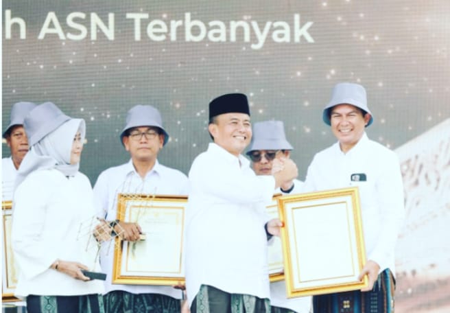 Penghargaan SIINas 2024 untuk Kabupaten Purwakarta diserahkan pada Acara Pemecahan Rekor MURI Pemakaian Sarung Tenun oleh ASN Terbanyak, bertempat di Halaman Gedung Sate Bandung.