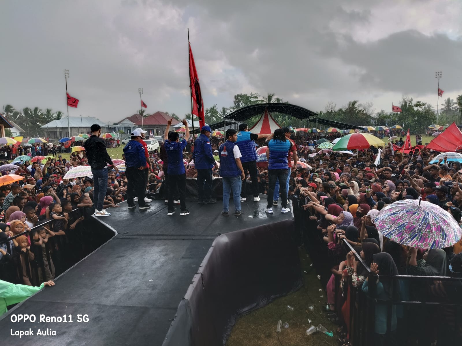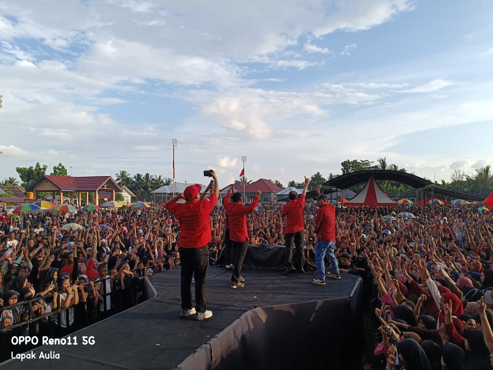 Tampak antusias ribuan masyarakat menyambut pasangan Maharaja Calon Bupati Boalemo dan Wakil Bupati Boalemo, dilapangan Suka Maju Kabupaten Boalemo, pada jum’at 22/11/2024.