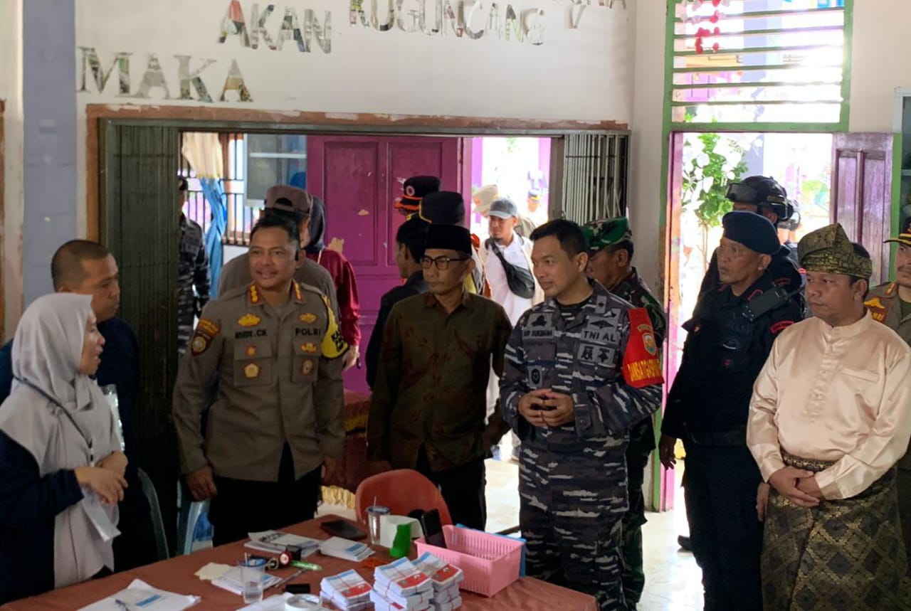 detikhukum.id, – TNI AL, Kepulauan Anambas,- Dalam rangka memastikan keamanan dan ketertiban pelaksanaan Pemilihan Kepala Daerah di Kabupaten Kepulauan Anambas, Danlanal Tarempa Letkol Laut (P) Ari Sukmana, S.E., M.Tr.Opsla., bersama jajaran Forkompimda Kabupaten Kepulauan Anambas melaksanakan peninjauan di tiap-tiap Tempat Pemungutan Suara (TPS) yang berada di Kota Tarempa, Kabupaten Kepulauan Anambas, Rabu (27/11/2024).