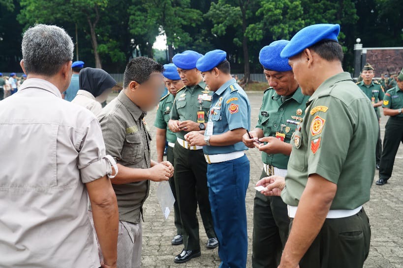 detikhukum.id,- (Puspen TNI). Komandan Satuan Siber (Dansatsiber) TNI, Brigjen TNI Ari Yulianto, S.I.P., M.H.I., sebagai Komandan Subsatgas Pemberantasan Judi Online melaksanakan pemeriksaan terhadap handphone (HP) milik personel Mabes TNI setelah kegiatan upacara mingguan, bertempat di Lapangan Upacara B3, Mabes TNI, Cilangkap, Jakarta Timur, Senin (2/12/2024).