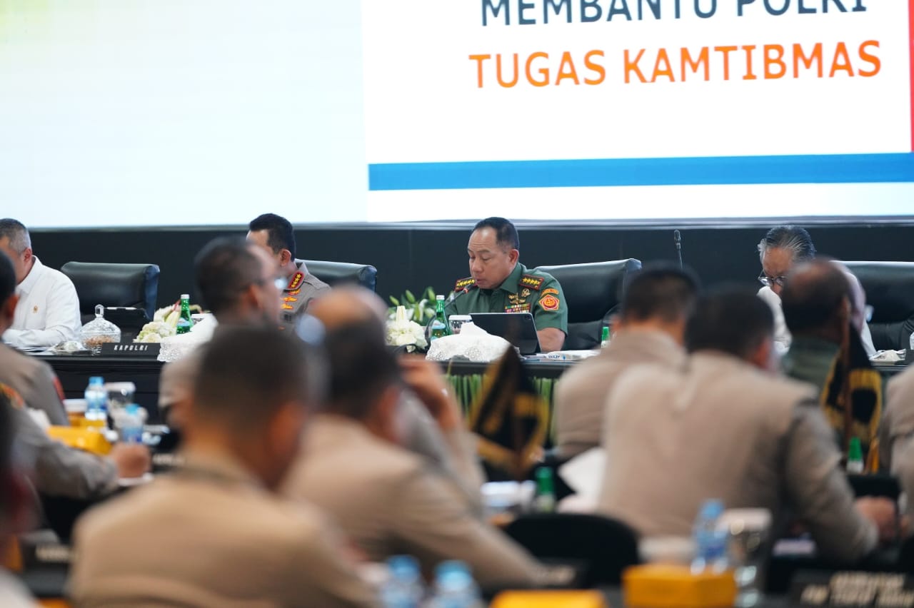 Di hadapan para awak media, Panglima TNI menyampaikan akan membantu Polri dan mengerahkan personel serta Alutsista TNI untuk mendukung Polri dalam pengamanan libur Nataru. “Untuk mendukung kesiapan Natal 2024 dan Tahun Baru 2025, TNI menyiapkan 80 ribu personel bantuan kepada Polri yang terdiri dari Angkatan Darat, Laut dan Udara. Selain personel, TNI menyiapkan transportasi darat seperti truk, kemudian udara menyiapkan pesawat Boeing 737, Hercules, Cassa dan CN-235 serta Helikopter”, ujar Panglima TNI.