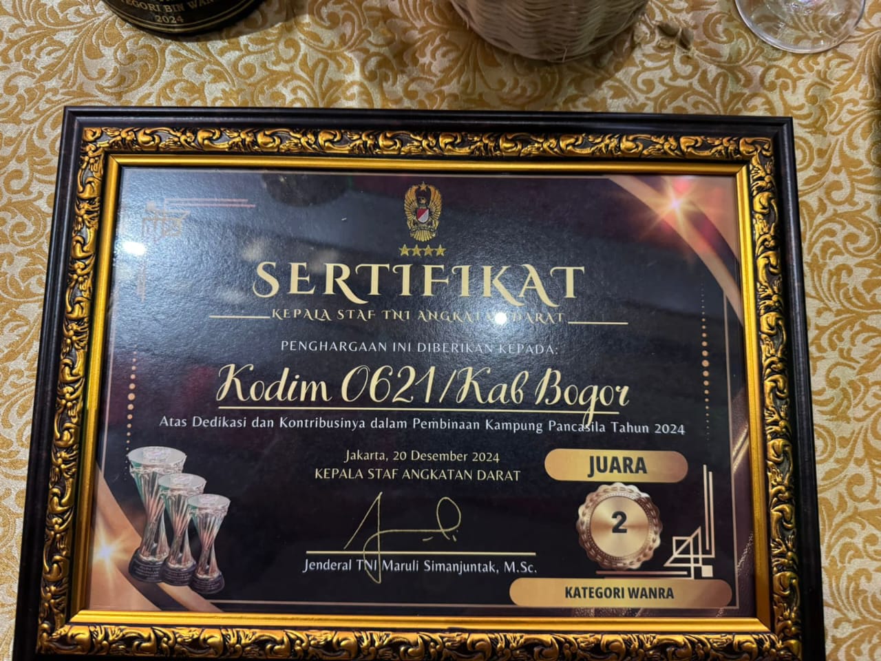 Adapun Kodim 0621 Kab Bogor,Kodam III Siliwangi salah satu yang mendapatkan penghargaan juara 2 KASAD Award Kampung Pancasila,hal itu tidak lepas dari binaan Dandim 0621 Kab Bogor Letkol Inf Anton Prasetyo, S.E., M.IP.