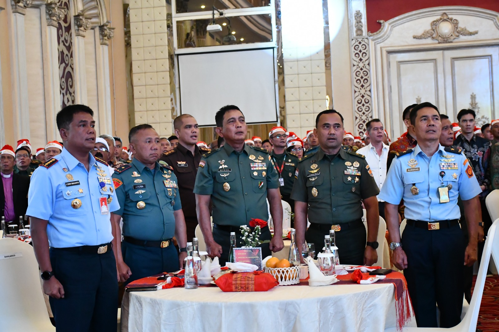 detikhukum.id, – TNI AL, Belawan,- Komandan Pangkalan Utama TNI Angkatan Laut I (Danlantamal I) Brigjen TNI (Mar) Jasiman Purba, S.E., CHRMP., bersama Personel beragama Kristen Lantamal I menghadiri Perayaan Natal Tahun 2024 bersama Kasad Jenderal TNI Maruli Simajuntak, M.Sc. beserta ibu Uly Simajuntak, bertempat di Regale International Conversation Center, Medan, Sumatera Utara, Selasa (07/01/2025).
