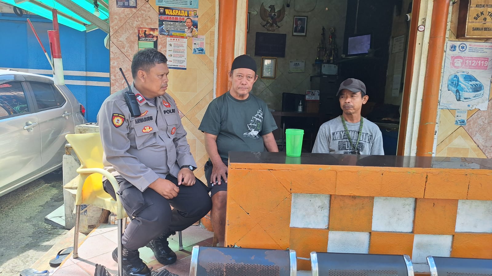 Dalam patroli ini, Aiptu Anwarudin bertemu dengan warga setempat, dan petugas lInmas Bapak Jayadi, dan memberikan imbauan terkait potensi gangguan kamtibmas, khususnya pencegahan aksi pencurian kendaraan bermotor di gang gang pemukiman, di sarankan untuk memasang CCTV secara swadaya jika sudah ada lakukan pengecekan secara berkala untuk memastikan masih berfungsi atau tidak.