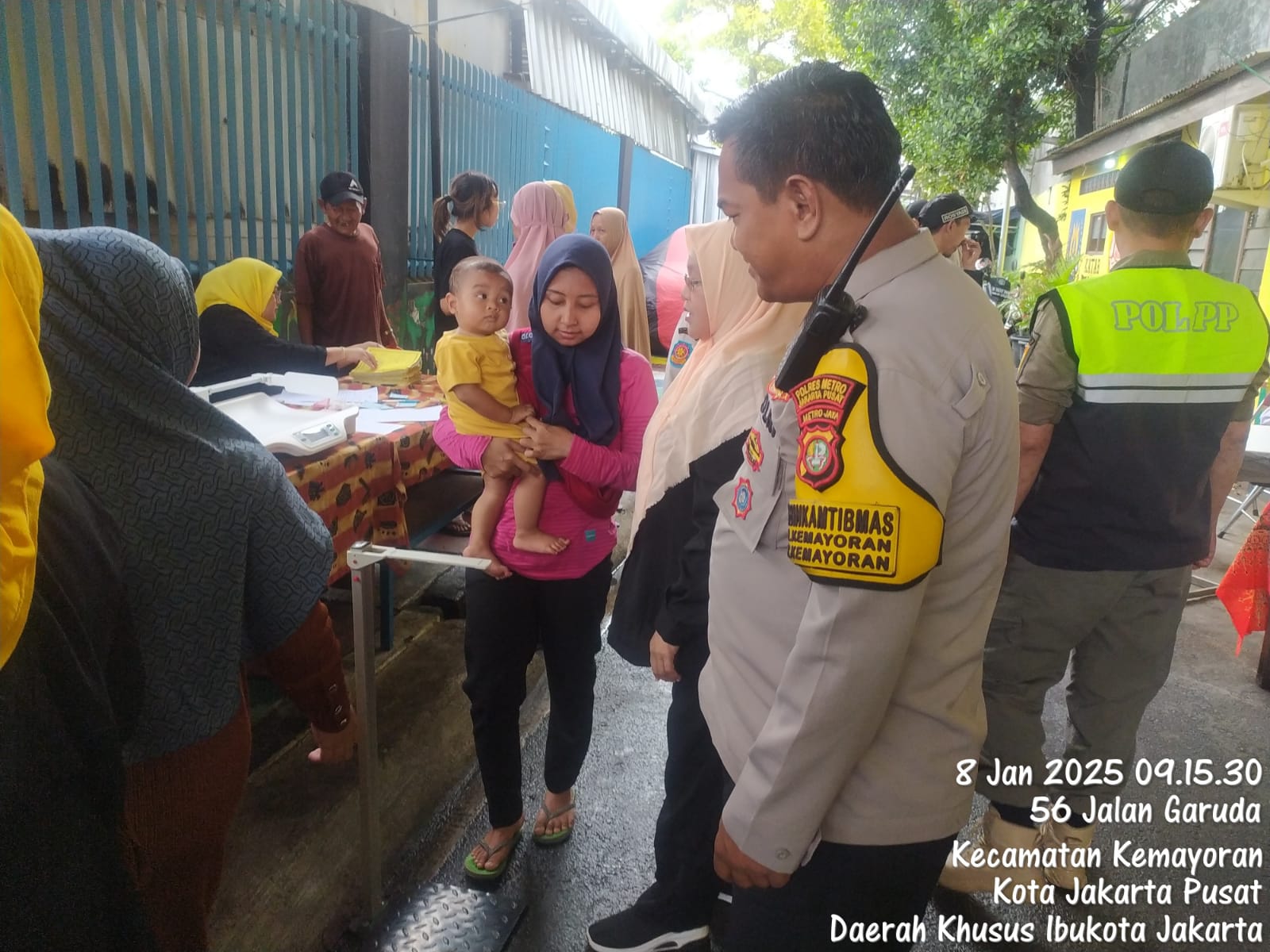 detikhukum.id, – Jakarta Pusat – Bhabinkamtibmas Kelurahan Kemayoran Aiptu Dwi Yulianto melakukan monitoring kegiatan Posyandu Balita Terintegrasi di Pos Rw.05 Kelurahan Kemayoran Jakarta Pusat. Rabu (08/01/2025).