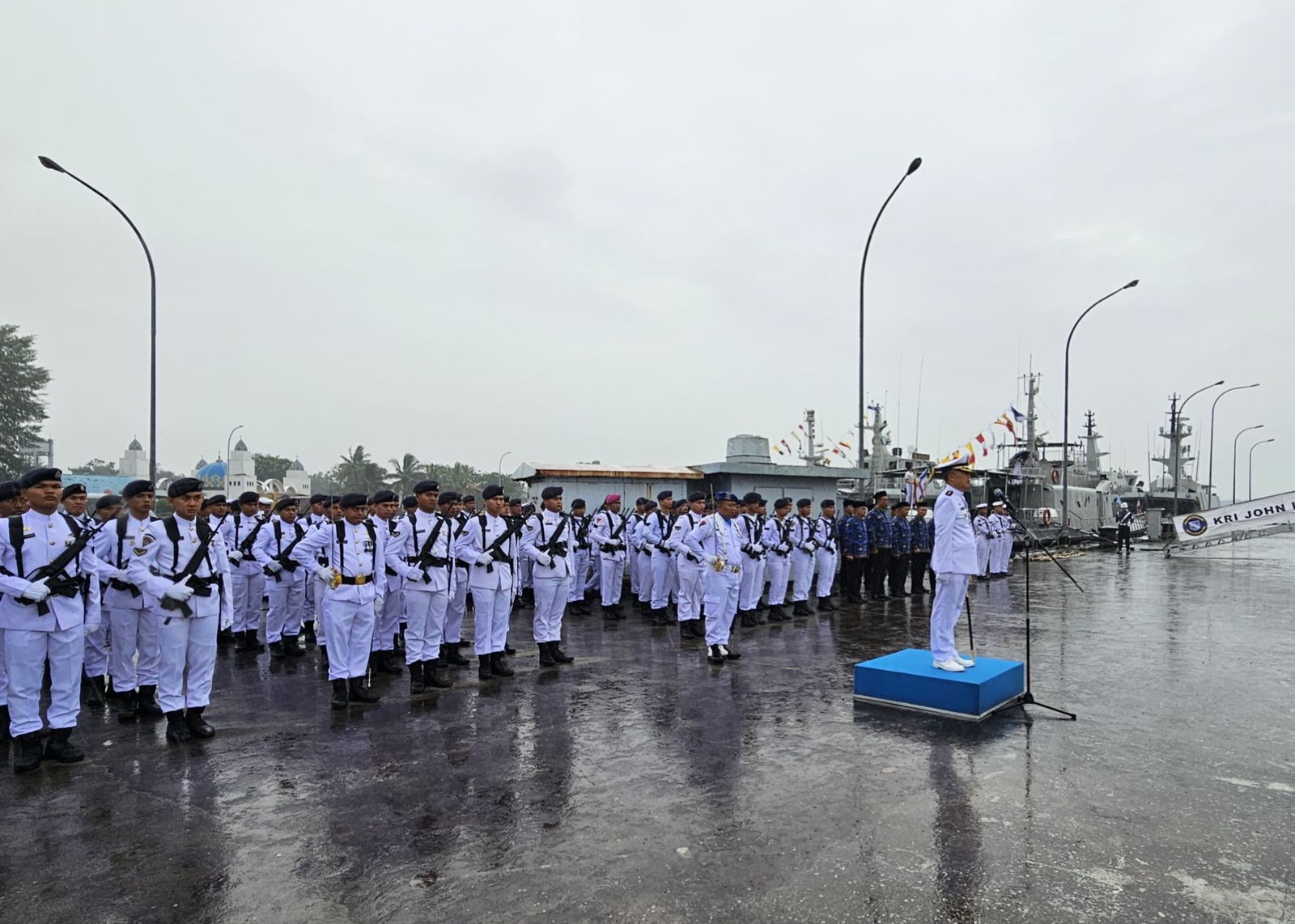 detikhukum.id, – TNI AL, Bintan,- Dengan semangat patriotisme dibawah guyuran hujan yang sangat deras, Danlanal Bintan Kolonel Laut (P) Dr. Eko Agus Susanto, S.E., M.M., tetap semangat pimpin Upacara Hari Dharma Samudera Tahun 2025 Satuan-satuan Koarmada I Tanjung Uban di Dermaga Lanal Bintan, Rabu (15/01/2025).