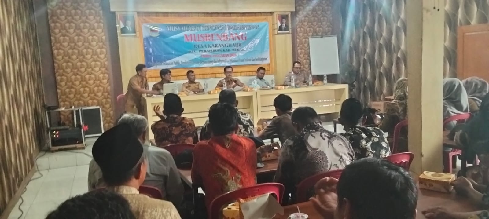 Acara MUSRENBANGDES ini dihadiri oleh Juhendi Sulaeman, S.T Kades Karanghaur, Syahid Al-Rasyid Sekretaris Desa Karanghaur, Imun Wahyudin, S.E Team monitoring Kecamatan Pebayuran, Samsul Kurniawan, S.Pd Ketua BPD Karanghaur, BRIPKA Mardi Suryadi BINMASPOL Desa Karanghaur, Irvan Munawar, S.Pd Ketua Karang Taruna Desa Karanghaur, Ahmad Syarifudin, C.BJ.,C.EJ Ketua AKPERSI DPC Kabupaten Bekasi, para perangkat desa Karanghaur, para anggota BPD Karanghaur, para anggota Karang Taruna Desa Karanghaur dan para petugas PKK Desa Karanghaur, Selasa 21 Januari 2025.