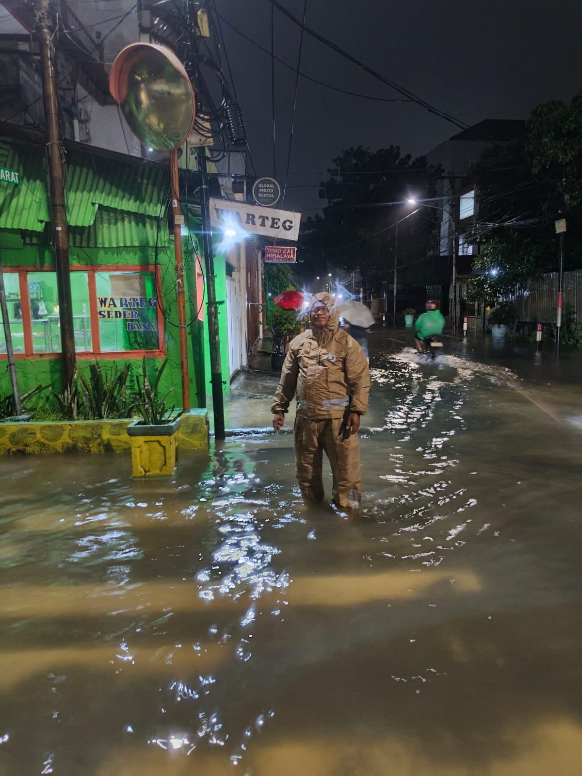 Bhabinkamtibmas Kelurahan Kemayoran Pantau Genangan Air Akibat Curah Hujan Yang Tinggi