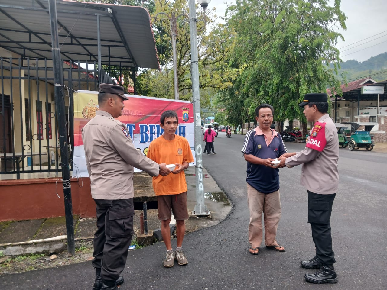 Dalam Rangka Jumat Berkah Polres Sibolga Bagikan Nasi Kepada Warga Dijalan