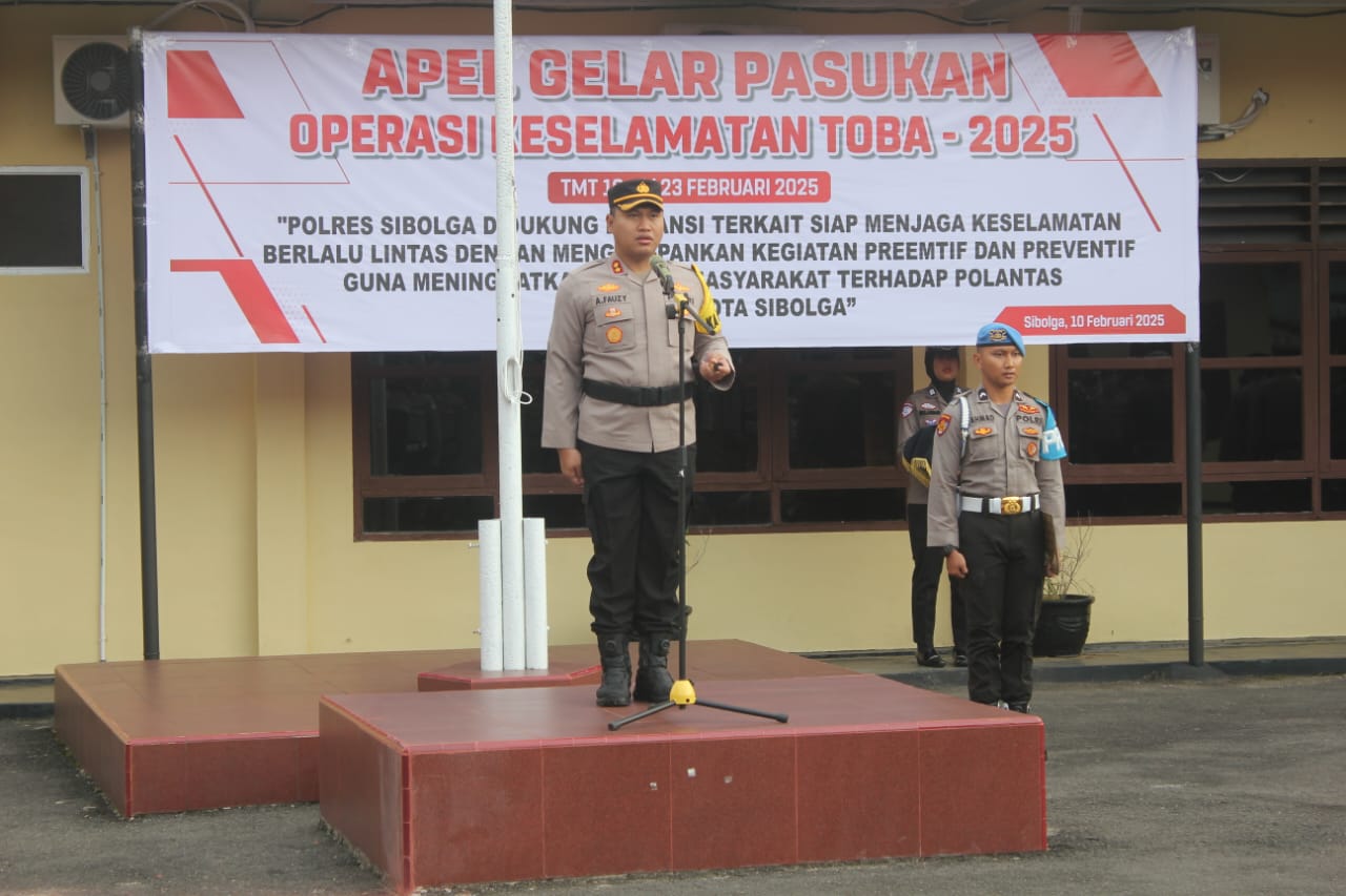 detikhukum.id,- Sibolga – Kapolres Sibolga, AKBP Achmad Fauzy, S.H., S.I.K., M.I.K., memimpin pelaksanaan Apel Gelar Pasukan Operasi Keselamatan Toba 2025, bertempat dilapangan apel Mapolres Sibolga. Operasi Keselamatan Toba 2025 ini sebagai bagian dari upaya meningkatkan disiplin masyarakat dalam berlalu lintas, serta menekan angka kecelakaan dan pelanggaran lalu lintas di wilayah hukum Polres Sibolga, Senin (10/02/2025).