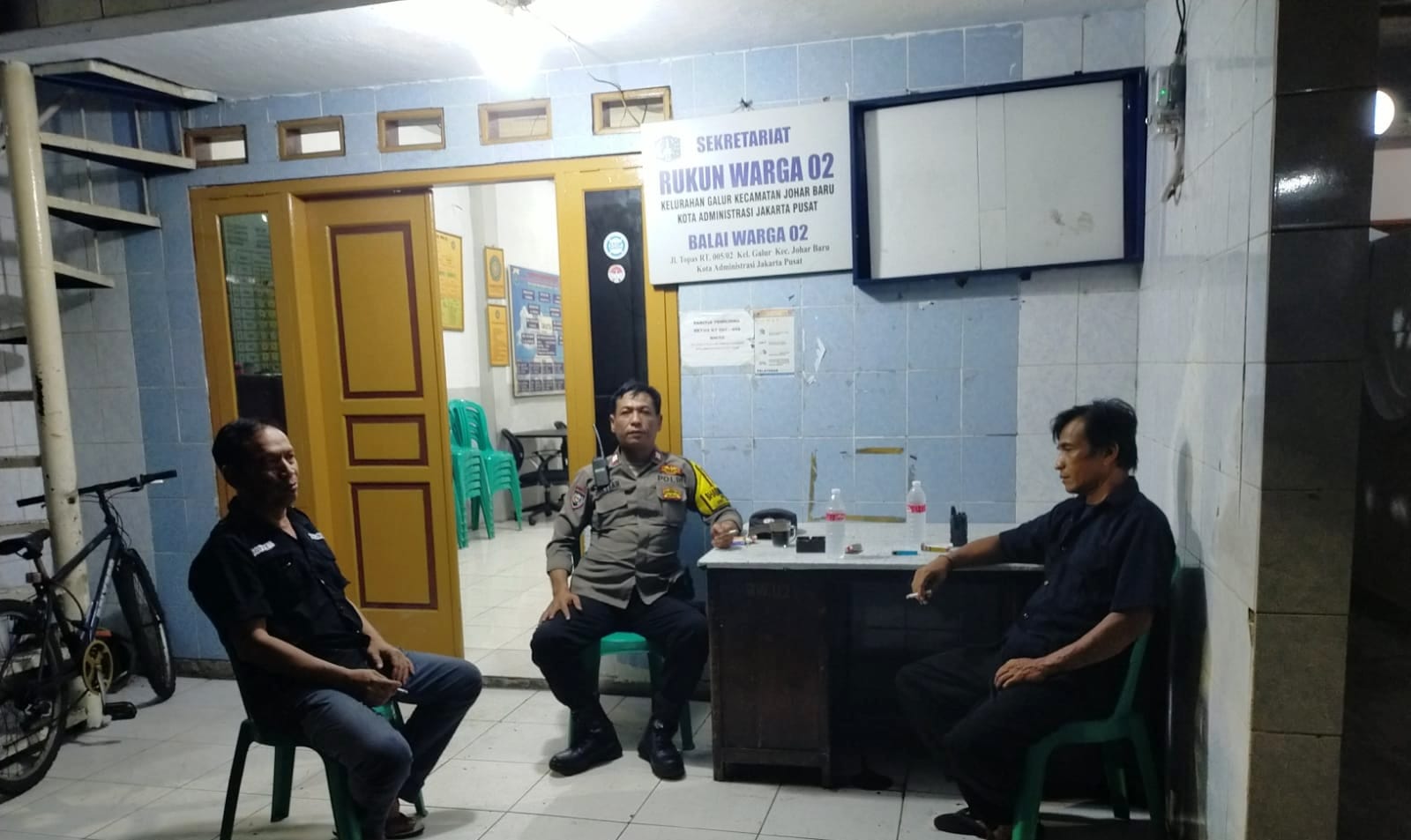 detikhukum.id, – Jakarta Pusat – Bhabinkamtibmas Kelurahan Galur Aiptu Baktiar Emri, melakukan kunjungan ke Pos Kamling RW 02 untuk memberikan imbauan Kamtibmas kepada petugas Satkamling yang sedang bertugas di Poskamling, Jalan Topaz RT 05 RW 02 Kelurahan Galur, Kecamatan Johar Baru Jakarta Pusat. Senin (10/02/2025). Kegiatan ini bertujuan untuk meningkatkan kewaspadaan dan kesiapsiagaan petugas Satkamling dalam menjaga keamanan lingkungan.
