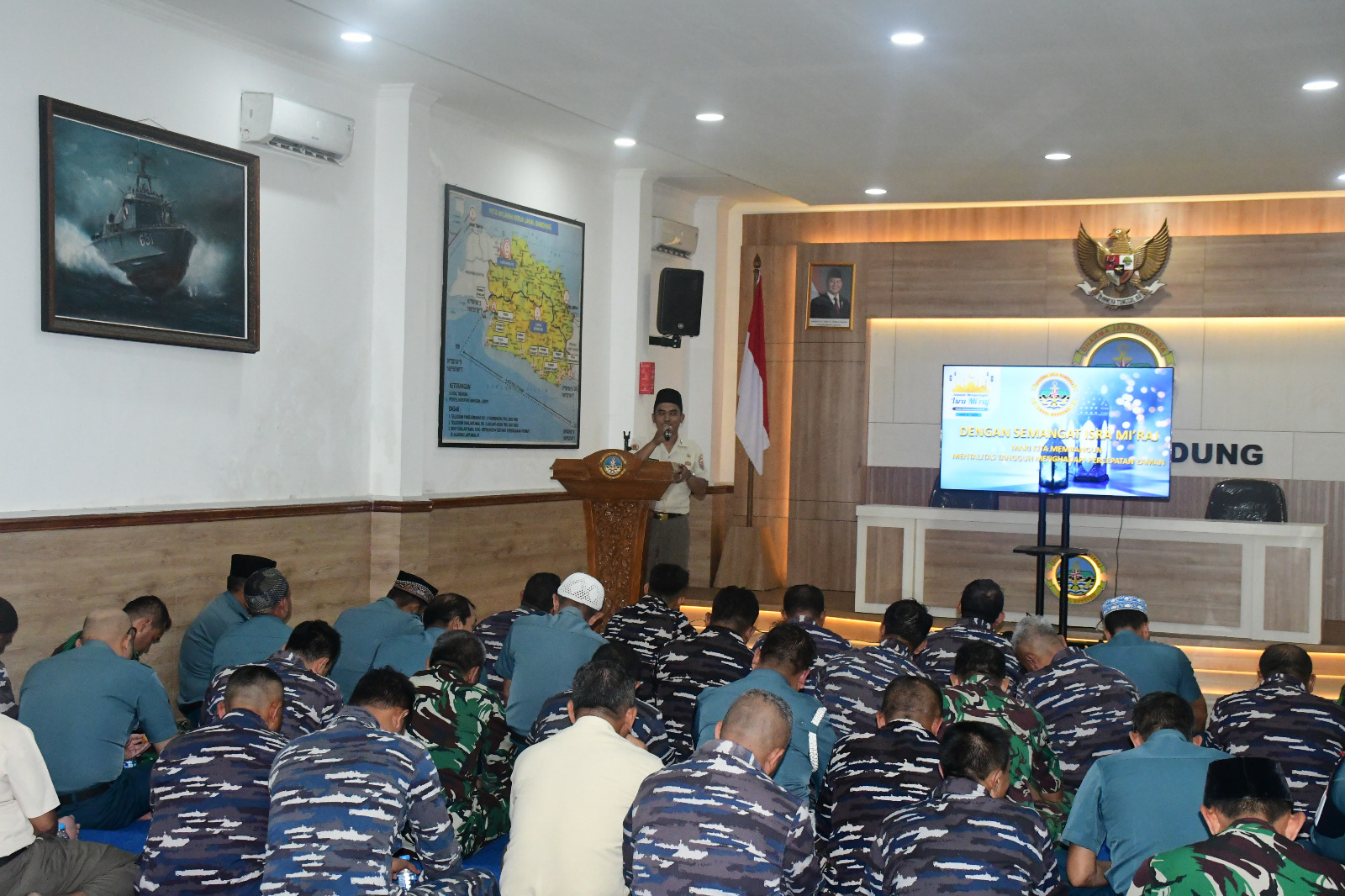 Dalam kesempatan ini, ceramah keagamaan disampaikan oleh PNS Dadang Ruhiat yang menekankan pentingnya meneladani akhlak Rasulullah SAW dalam kehidupan sehari-hari, baik sebagai individu maupun dalam menjalankan tugas sebagai Prajurit TNI AL. Beliau juga mengingatkan bahwa kecintaan kepada tanah air merupakan bagian dari iman, sebagaimana diajarkan dalam Islam.
