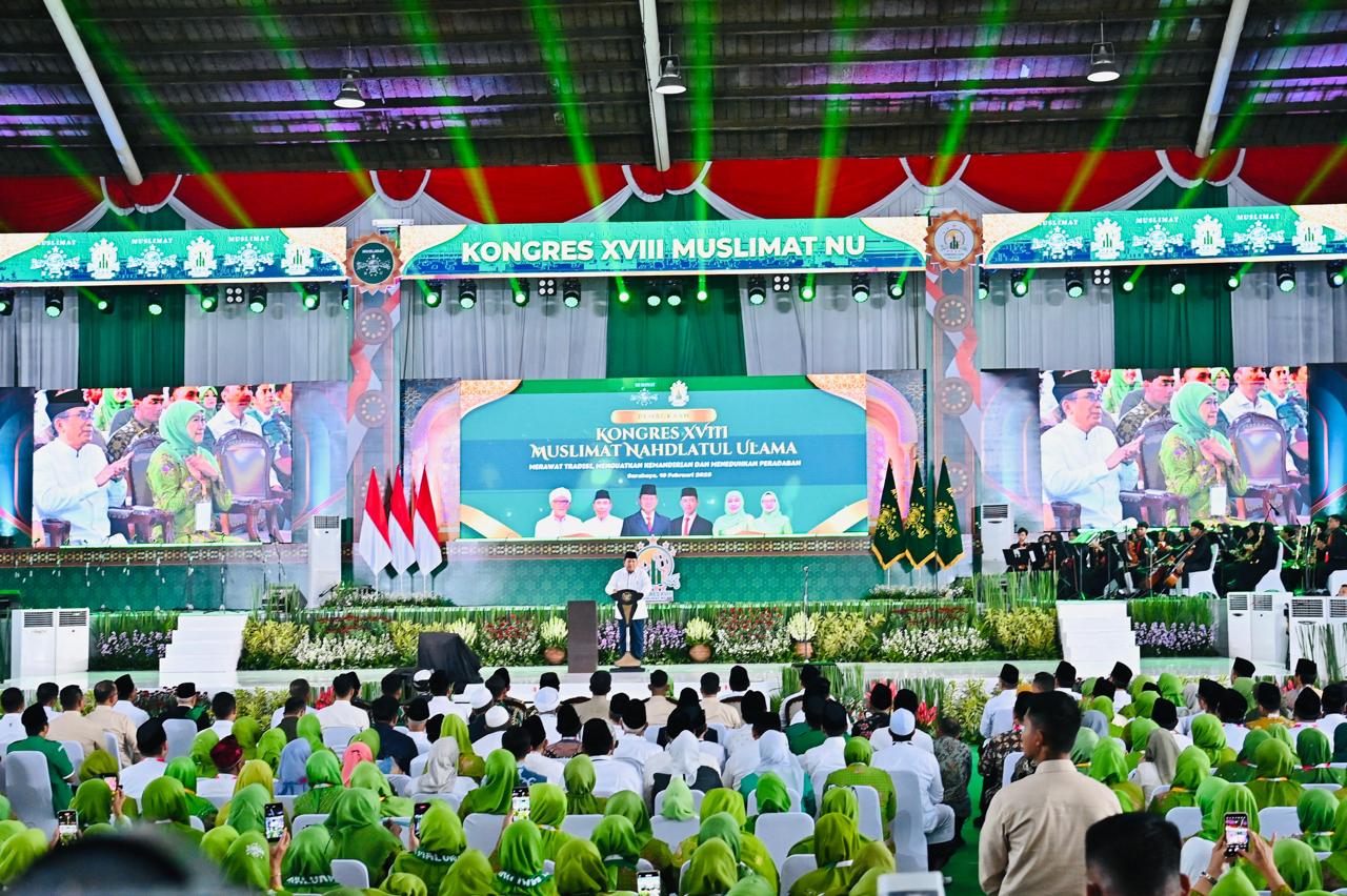 “Saya sangat hormat. Saya menyampaikan penghargaan kepada Muslimat, kepada NU yang membesarkan Muslimat. Luar biasa NU dalam sejarahnya, dalam tradisinya, dalam setiap krisis bangsa, NU muncul untuk menyelamatkan bangsa,” ungkap Presiden Prabowo.