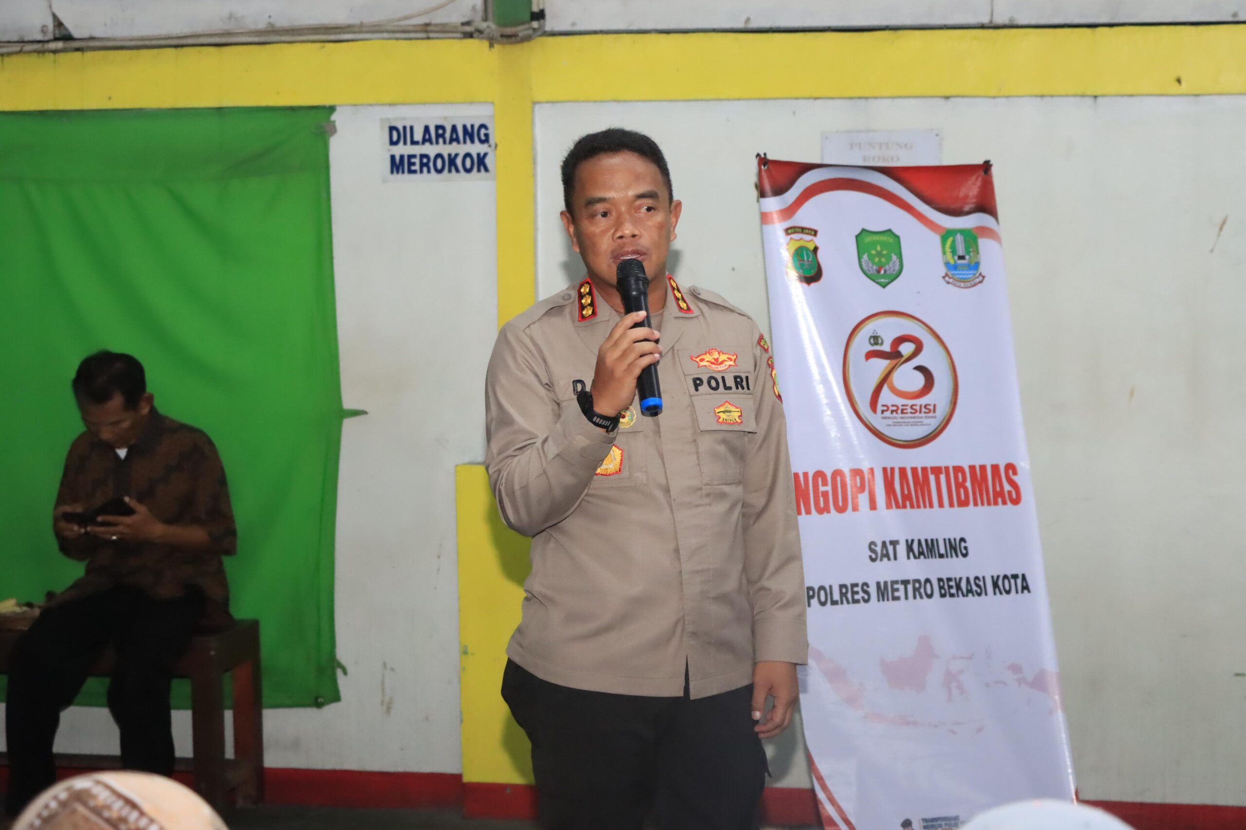 Kegiatan yang dimulai pukul 20.10 WIB ini dihadiri Kapolres Metro Bekasi Kota Kombes Pol Dhani Hamdani, S.I.K., M.P.M, Kasat Bimas Kompol Syarifah Chaira Sukma, Kapolsek Rawalumbu AKP Ririn Sri Damayanti, S.H., M.H., serta Camat Bekasi Timur Ibu Fitri Widyati, S.STP., M.Si. Mereka berdiskusi santai bersama warga, membahas isu-isu kamtibmas seperti tawuran remaja, penipuan online, hingga pinjaman ilegal (pinjol).